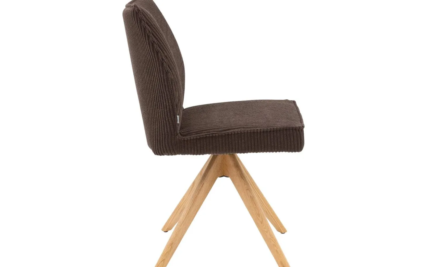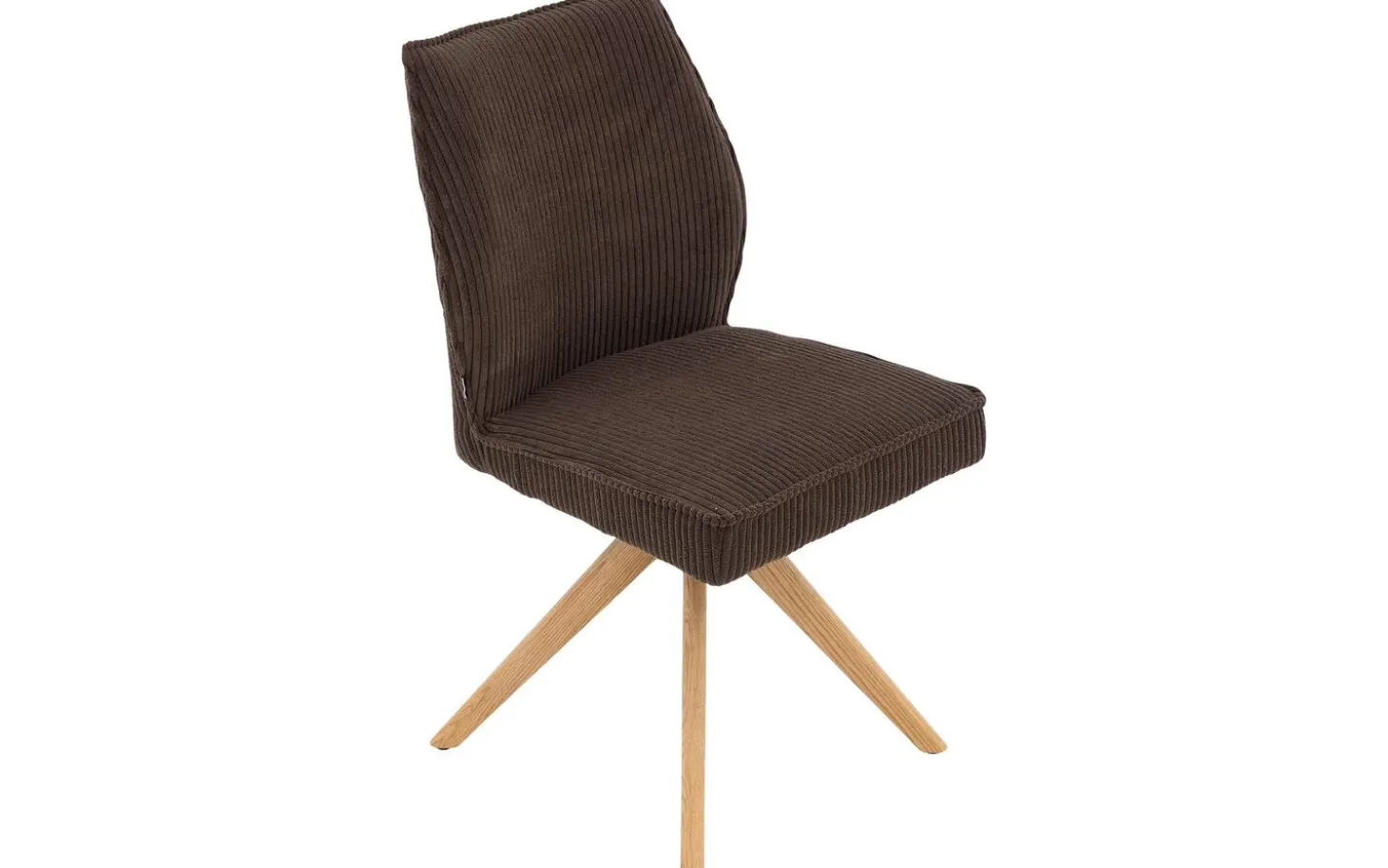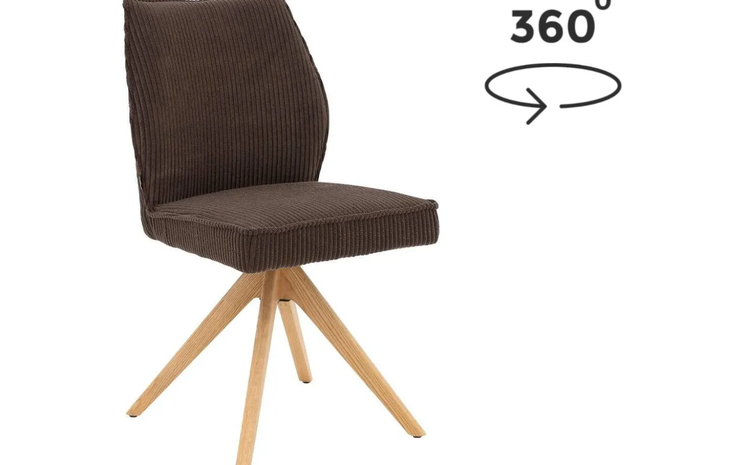 Endlos tafeln mit Esszimmerstuhl Laurens. Dieser braune Esszimmerstuhl ohne Armlehne verbindet Stil und Komfort in einem vielseitigen Design. Der warme Cordstoff-Bezug verleiht Ihrem Esszimmer sofort eine gemütliche Ausstrahlung, während das naturbelassene Eichenholzgestell für eine natürliche Note sorgt. Dank der 360°-Drehfunktion mit Return-Mechanismus können Sie sich leicht an den Tisch setzen und aufstehen, ohne den Stuhl zu verschieben.