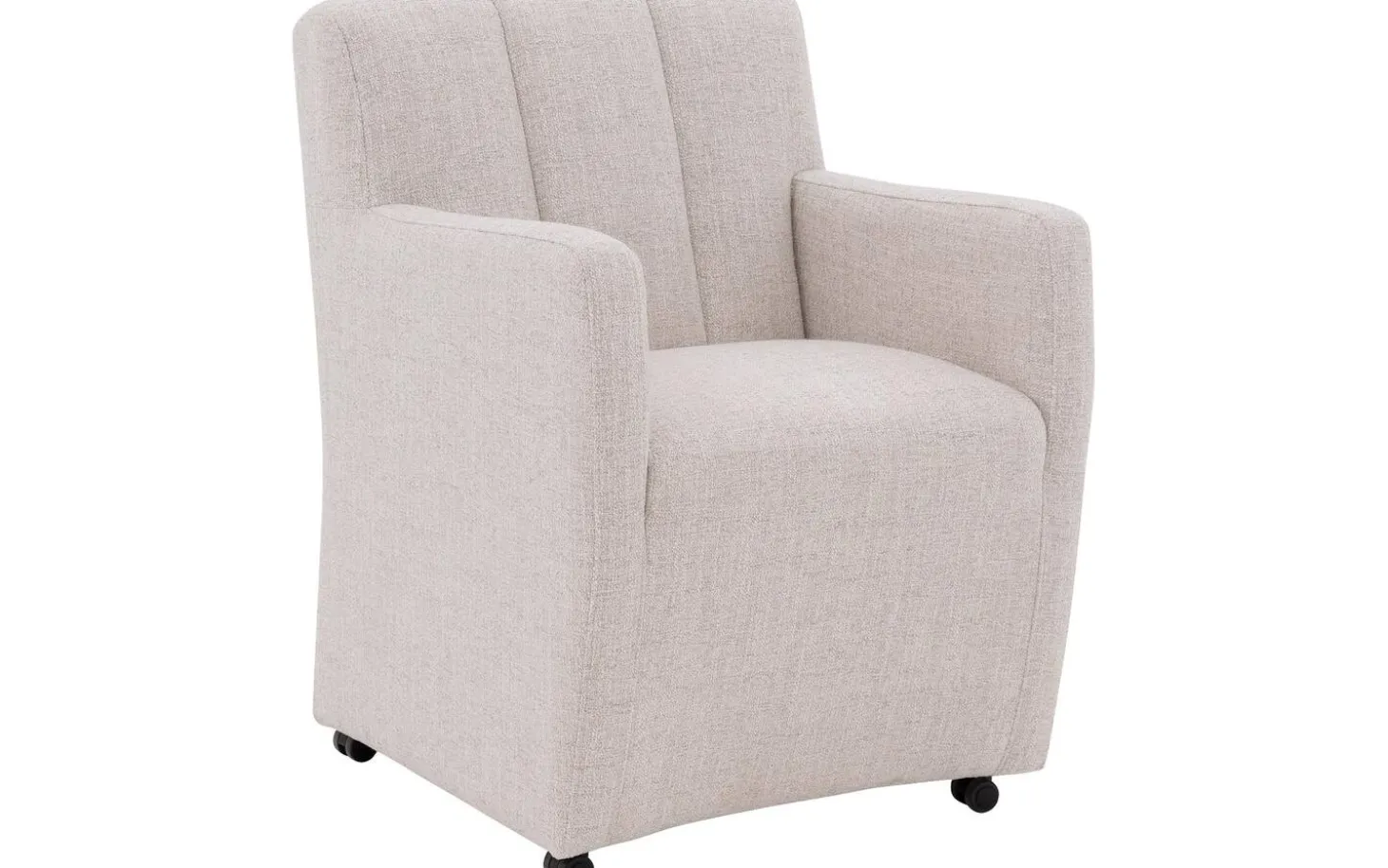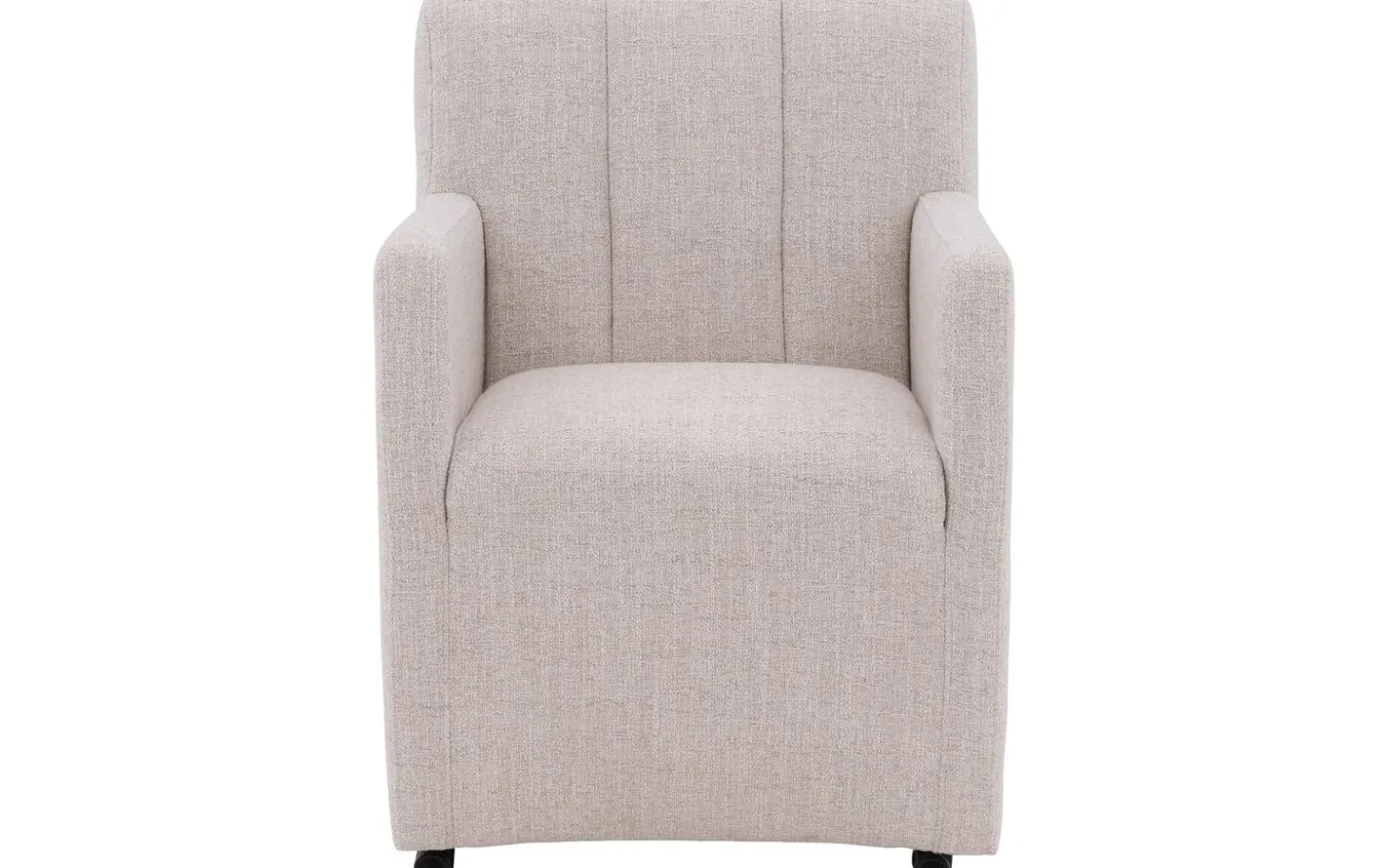 Der weiße Esszimmerstuhl Lewise mit Armlehne bringt Stil und Komfort an Ihren Esstisch. Dieser Stuhl aus Stoff fällt durch sein einzigartiges Design mit vertikalen Nähten an der Rückenlehne auf, was ihm eine zeitgemäße Ausstrahlung verleiht. Der natürliche, melierte weiße Stoff kombiniert perfekt mit verschiedenen Einrichtungsstilen und verleiht Ihrem Esszimmer eine warme Ausstrahlung. Dank der praktischen Rollen und des Handgriffs können Sie leicht an den Tisch heranrücken und wieder aufstehen.