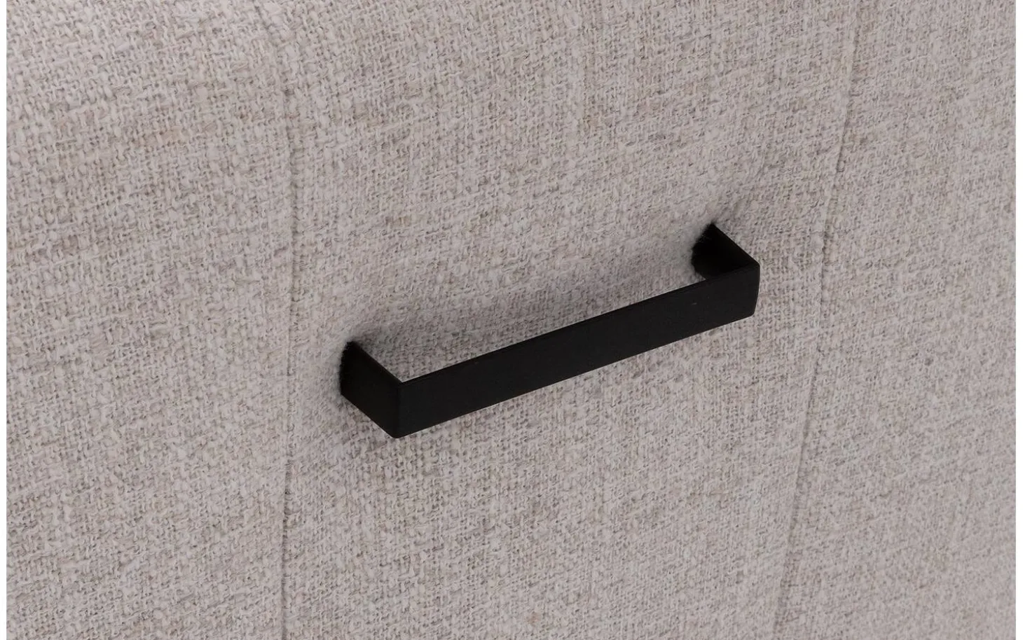 Der grob gewebte, melierte Stoff im Naturton verleiht dem Lewise eine reiche Textur, die Wärme in Ihr Esszimmer bringt. Die vertikalen Nähte an der Rückenlehne sorgen für einen zeitgemäßen Look, der sowohl modern als auch zeitlos ist. Der matt schwarze Handgriff bildet einen schönen Kontrast zur hellen Polsterung.