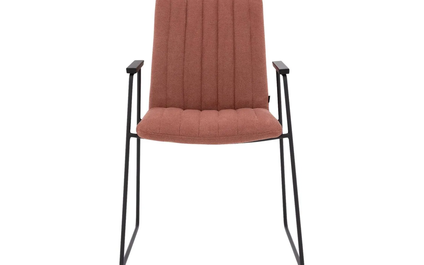 Eetkamerstoel Manta met armleuning combineert fijne lijnen met een grof geweven roze stoffering voor een moderne uitstraling. De kuip is vast gestoffeerd en verticaal gestikt, wat zorgt voor een unieke en strakke look. De ranke zwart metalen poot loopt naadloos over in de armleuning met fraaie armlegger. Met een armhoogte van 64 cm past deze eetstoel onder de meeste gangbare eettafels.