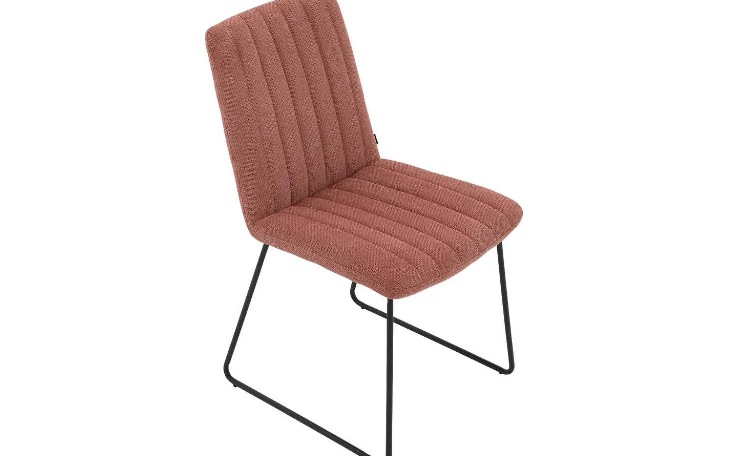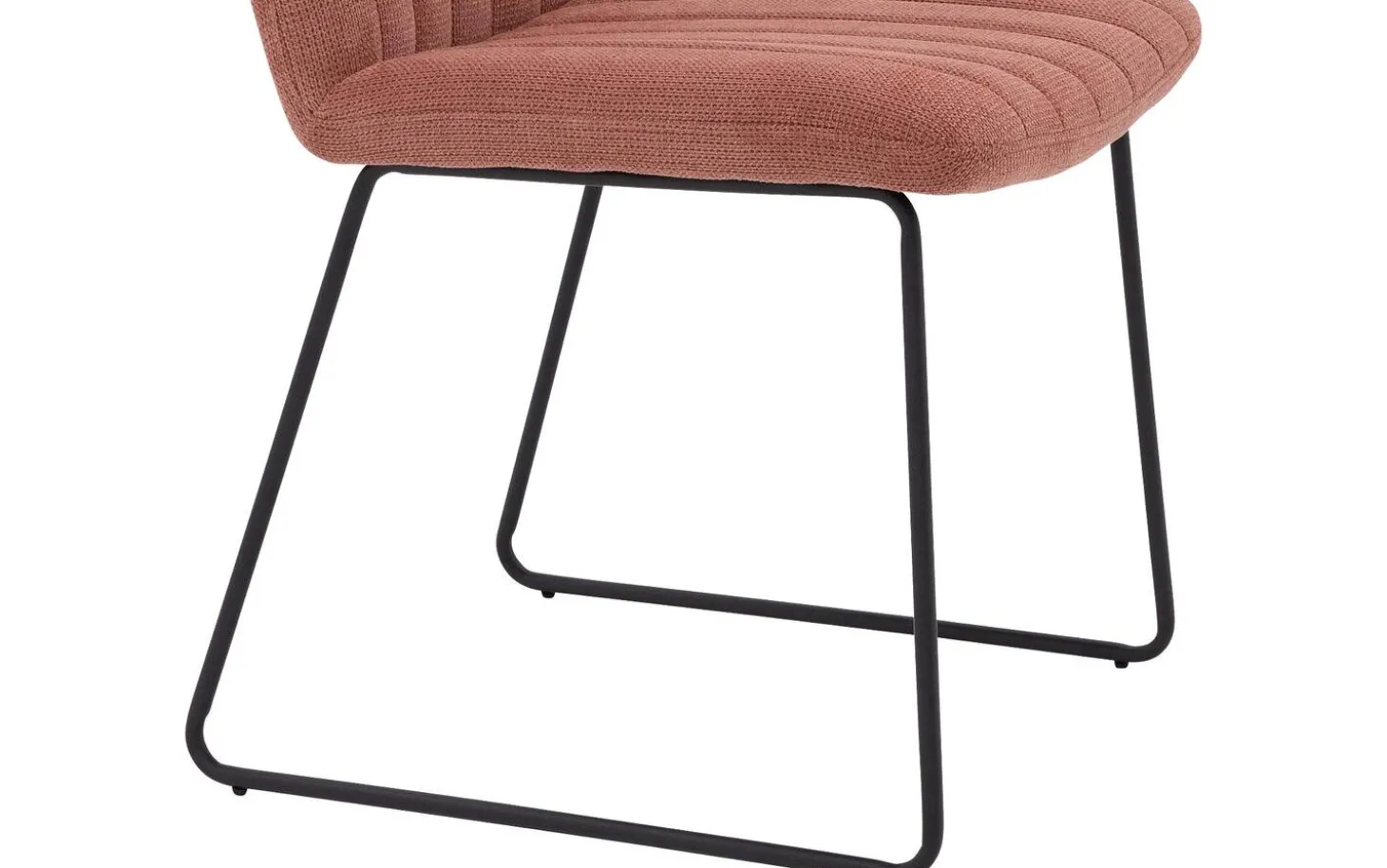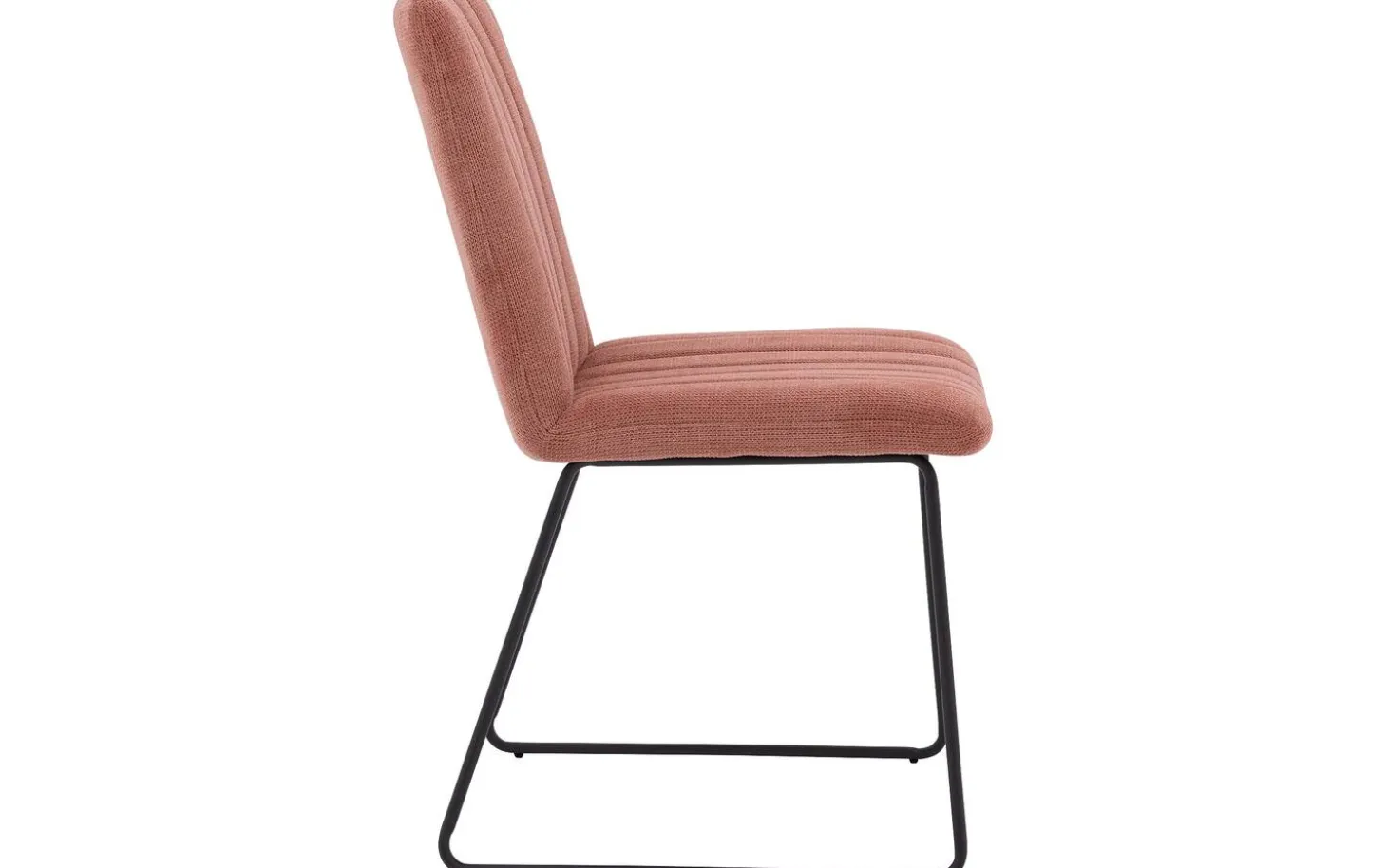 Bekijk roze eetkamerstoel Manta zonder armleuning. Deze trendy eetstoel combineert fijne lijnen met een rijke geweven stoffering voor een moderne uitstraling. De strakke kuip met verticale stiksels geeft Manta een uniek karakter, terwijl de hoogwaardige schuimvulling zorgt voor fijne ondersteuning. De ranke zwarte metalen poot loopt naadloos over in de kuip en past onder de meeste gangbare eettafels.