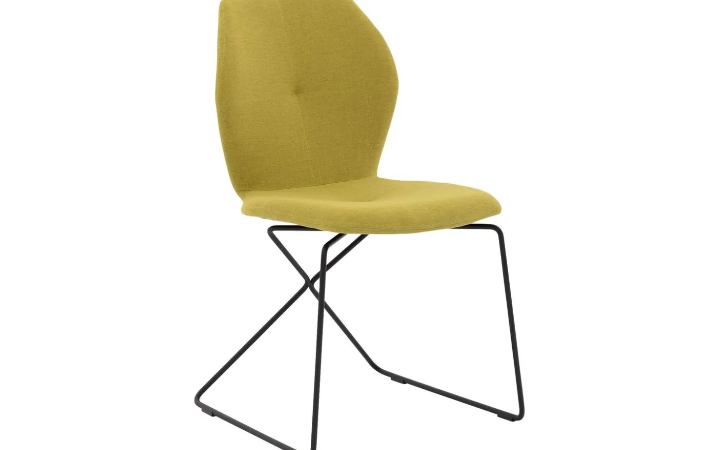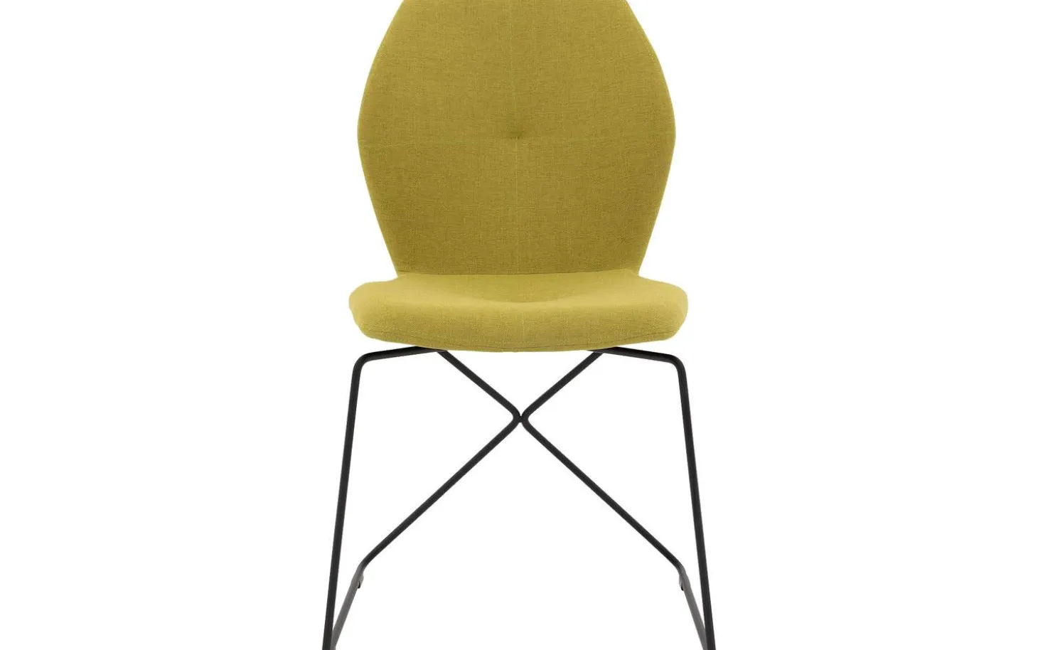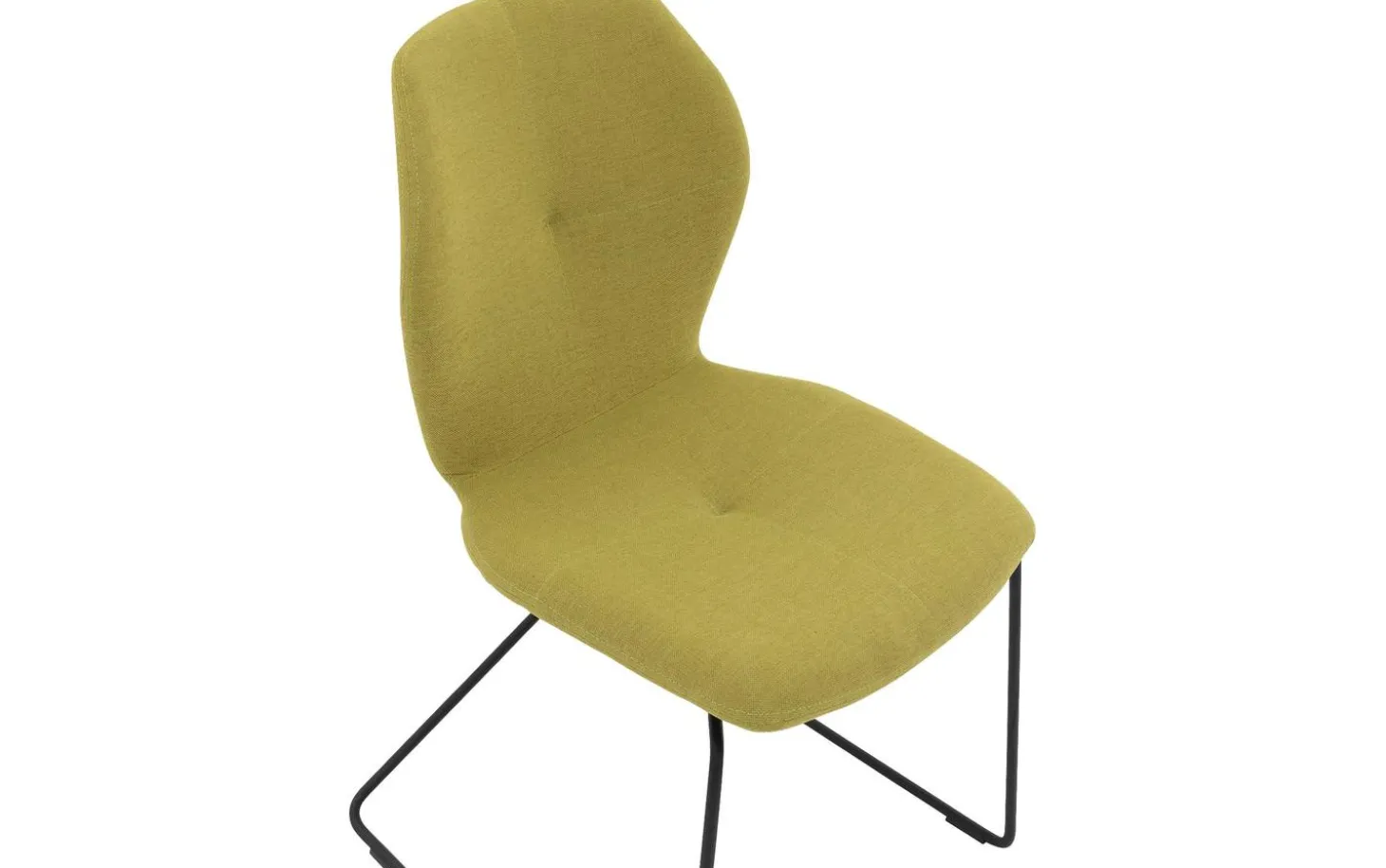 Dieser moderne Stuhl ist mit einem fein gewebten limettgrünen Stoff bezogen, der dem Stuhl eine frische Ausstrahlung verleiht. Das schwarze Metallgestell bildet einen schönen Kontrast zur grünen Sitzfläche und gibt dem Stuhl eine minimalistische Ausstrahlung. Die Ziernähte an der Rückenlehne fügen dem Design ein elegantes Detail hinzu.