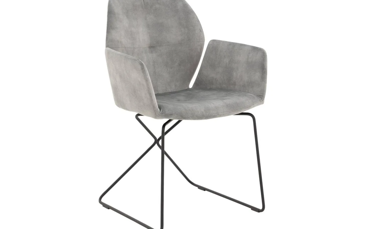Entdecken Sie den grauen Esszimmerstuhl Manzini mit Armlehne, ein wunderschönes Designstück für Ihren Esstisch. Dieser Stuhl kombiniert modernes Design mit hervorragendem Komfort. Der stilvolle Sitzbereich mit subtiler Ziernaht an der Rückenlehne und dem schlanken schwarz pulverbeschichteten Gestell sorgen für eine räumliche Ausstrahlung. Manzini ist dadurch ein echter Blickfang in sowohl kleinen als auch großen Esszimmern. Die luxuriöse Velourspolsterung in Steel Grey verleiht diesem Stuhl eine warme und stimmungsvolle Note.