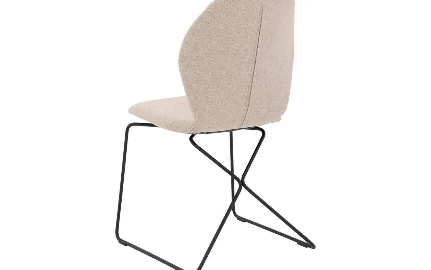 Das minimalistische Design des Esszimmerstuhls Manzini zeichnet sich durch das schlanke schwarze Metallgestell aus, das einen schönen Kontrast zur beigen Polsterung bildet. Die feste Polsterung sorgt für eine klare und moderne Ausstrahlung, die lange schön bleibt. Das fein gewebte Material fühlt sich angenehm an und ist langlebig im Gebrauch.