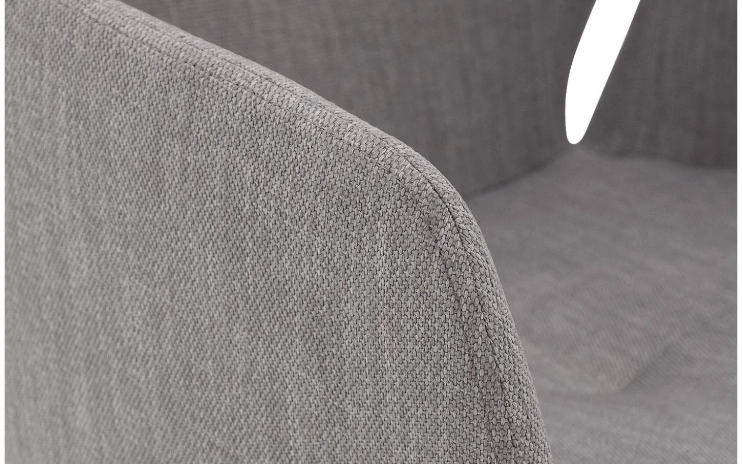 Grauer Esszimmerstuhl mit Armlehne Manzini ist ein modernes Designstück, das sowohl in großen als auch in kleinen Esszimmern geräumig wirkt. Dieser Esszimmerstuhl fällt durch die stilvolle Ziersteppung auf der Rückenlehne und das schlanke, weiß pulverbeschichtete Gestell auf. Die fein gewebte silberfarbene Polsterung macht diesen Stuhl zu einem subtilen Blickfang an Ihrem Esstisch, während die dezente Ausstrahlung dafür sorgt, dass er zu verschiedenen Einrichtungsstilen passt.