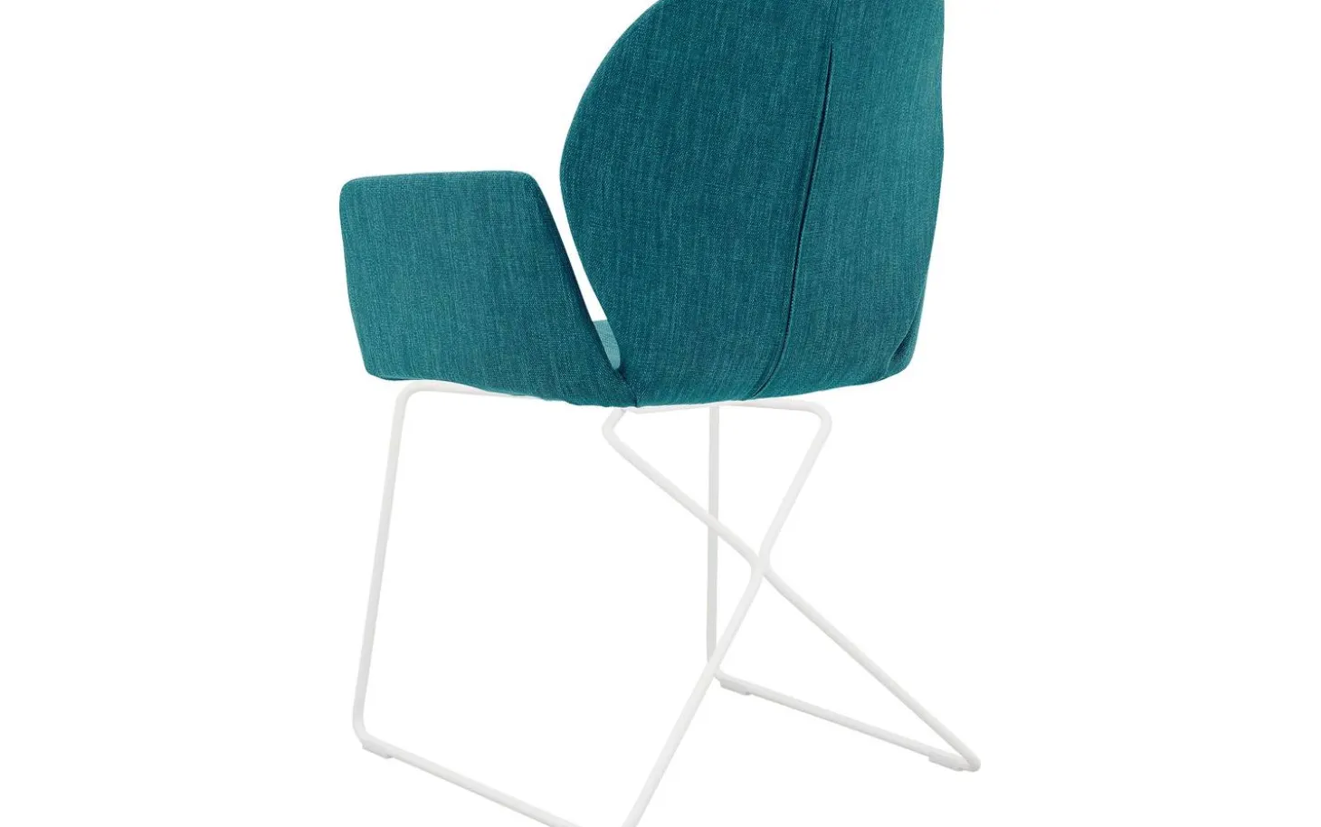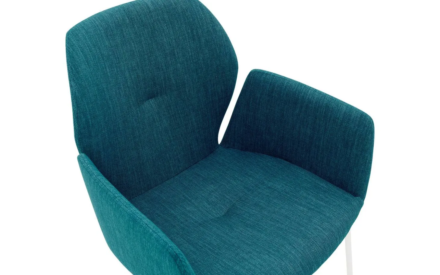 Der grüne Esszimmerstuhl Manzini mit Armlehne hat eine moderne Designausstrahlung mit einem komfortablen Sitz. Das räumliche Design kombiniert eine fein gewebte türkisfarbene Stoffbespannung mit einem schlanken weiß pulverbeschichteten Untergestell. Ein subtiles Detail ist die stilvolle Ziernaht an der Rückenlehne, die diesem Esszimmerstuhl das gewisse Extra verleiht. Durch seine zurückhaltende Ausstrahlung passt Manzini sowohl in große als auch in kleine Esszimmer.
