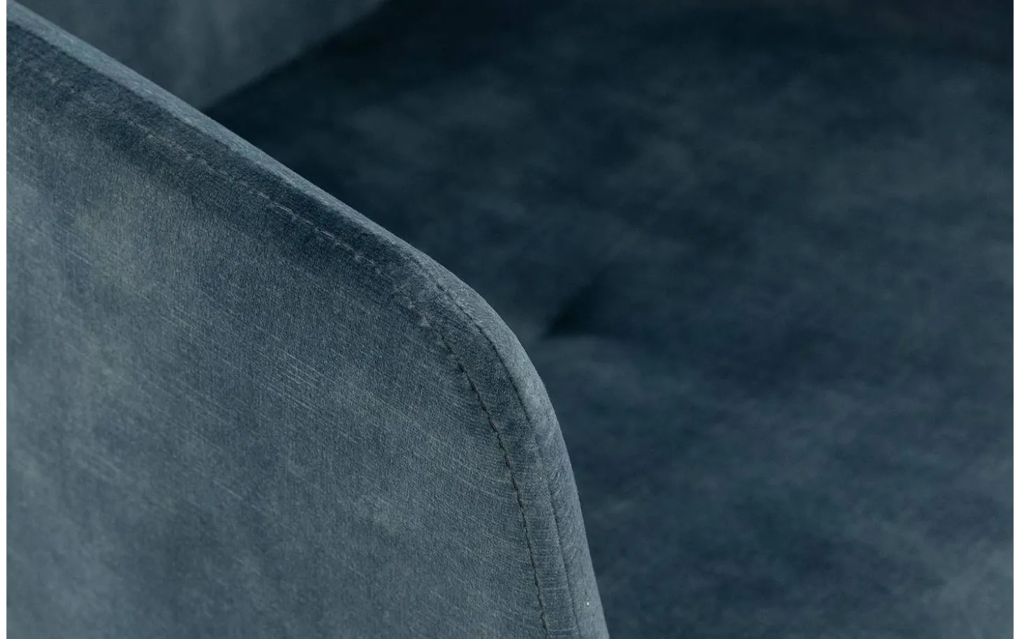 Stilvolle Details dieses blauen Esszimmerstuhls mit Armlehne