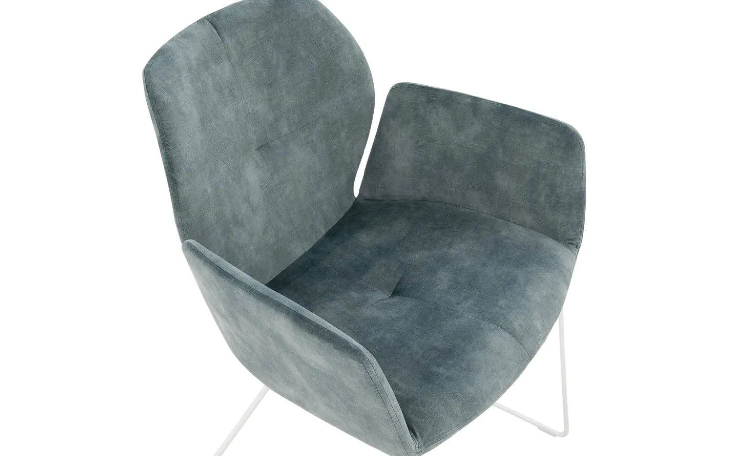 Die weiß pulverbeschichteten Beine bilden einen schönen Kontrast zur türkisfarbenen Polsterung und verleihen dem Stuhl eine luftige, moderne Ausstrahlung. Durch die feste Polsterung behält der Manzini seinen klaren und zeitgemäßen Look, was ihn für verschiedene Einrichtungsstile geeignet macht.