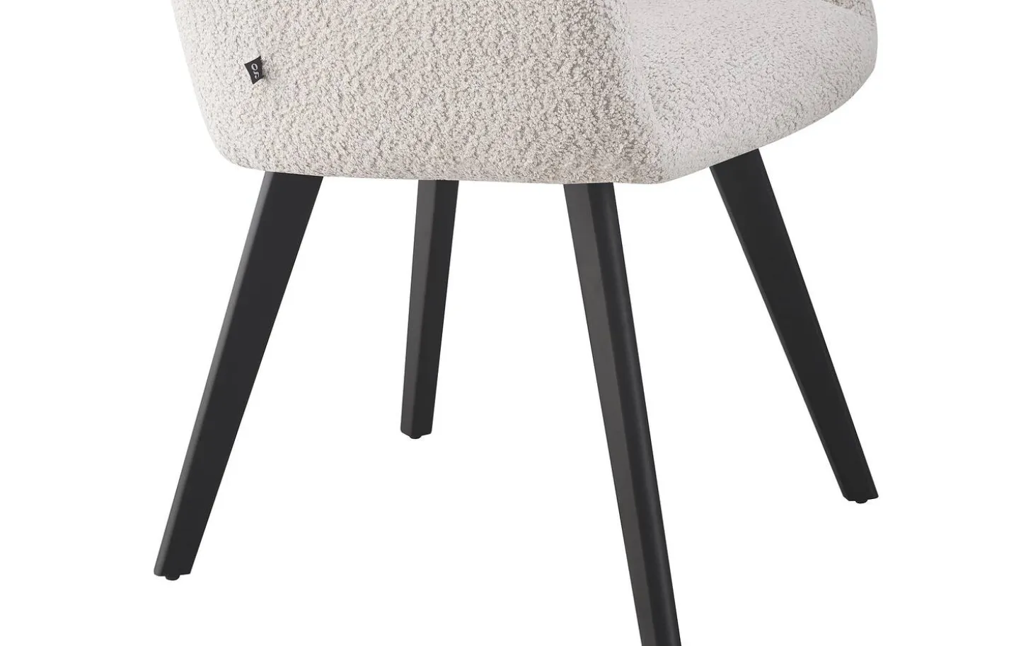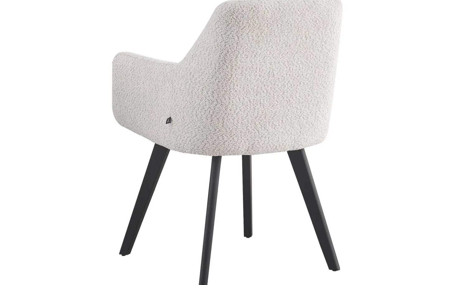 Der Bouclé-Stoff im Naturton verleiht dem Esszimmerstuhl Mara eine warme und einladende Ausstrahlung. Die luxuriöse Struktur des Stoffes fügt nicht nur Textur zu Ihrem Interieur hinzu, sondern ist auch angenehm zu besitzen. Das schwarze Gestell mit Pulverbeschichtung bildet einen schönen Kontrast zur warmen Farbe und sorgt für einen stilvollen, modernen Touch.