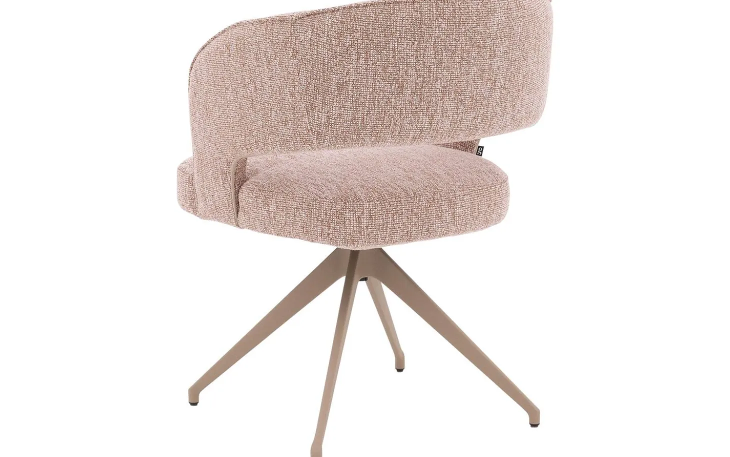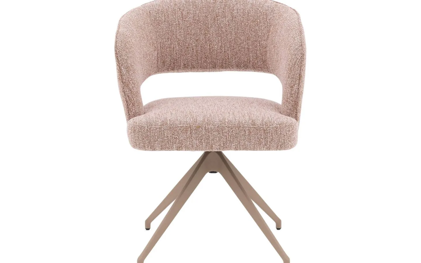 Der grob gewebte rosafarbene Stoff verleiht diesem Stuhl eine warme und einladende Ausstrahlung. Das melierte Blossom-Muster fügt eine subtile Textur hinzu, die für Tiefe und Charakter sorgt. Die Armlehnen sind mit einer eleganten Paspel versehen, was diesem Stuhl das gewisse Extra verleiht.