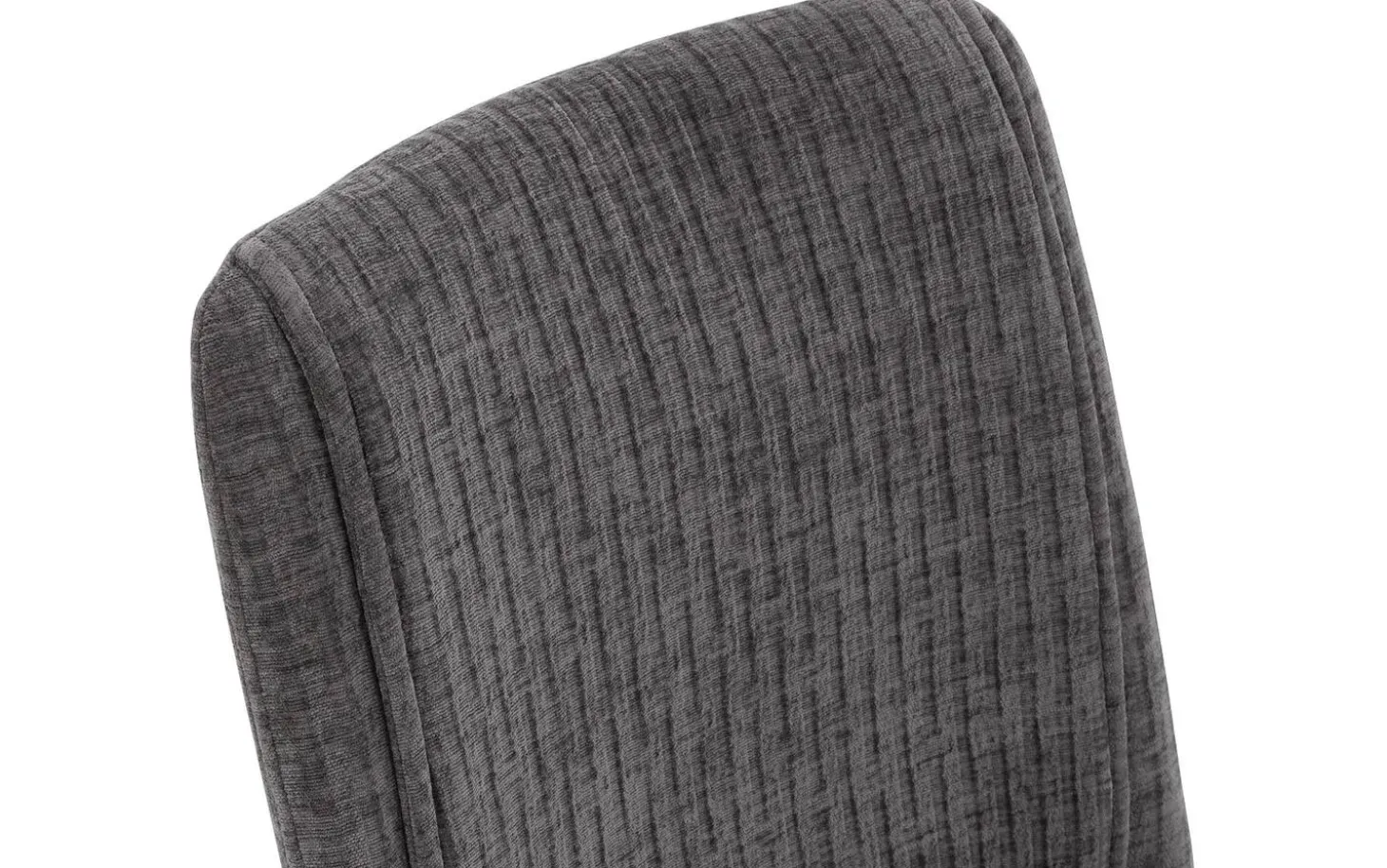 De grijze ribstof bekleding geeft Ysmay een moderne en speelse uitstraling. De stof heeft een fijne structuur die zorgt voor een eigentijdse look. De stoel is vast gestoffeerd, waardoor het geheel een strak en modern oogt.