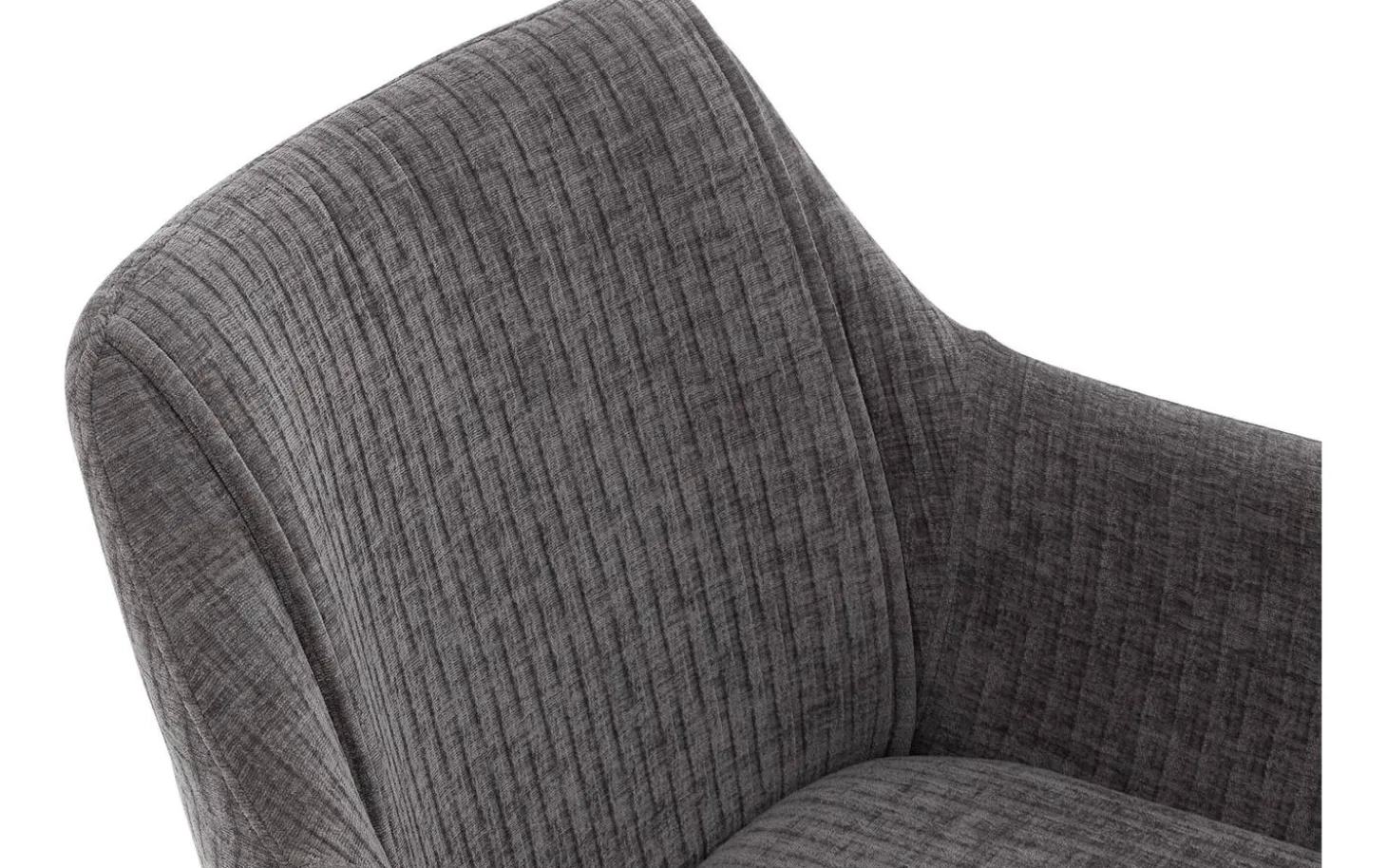 Stilvolle Details dieses grauen Esszimmerstuhls mit Armlehne