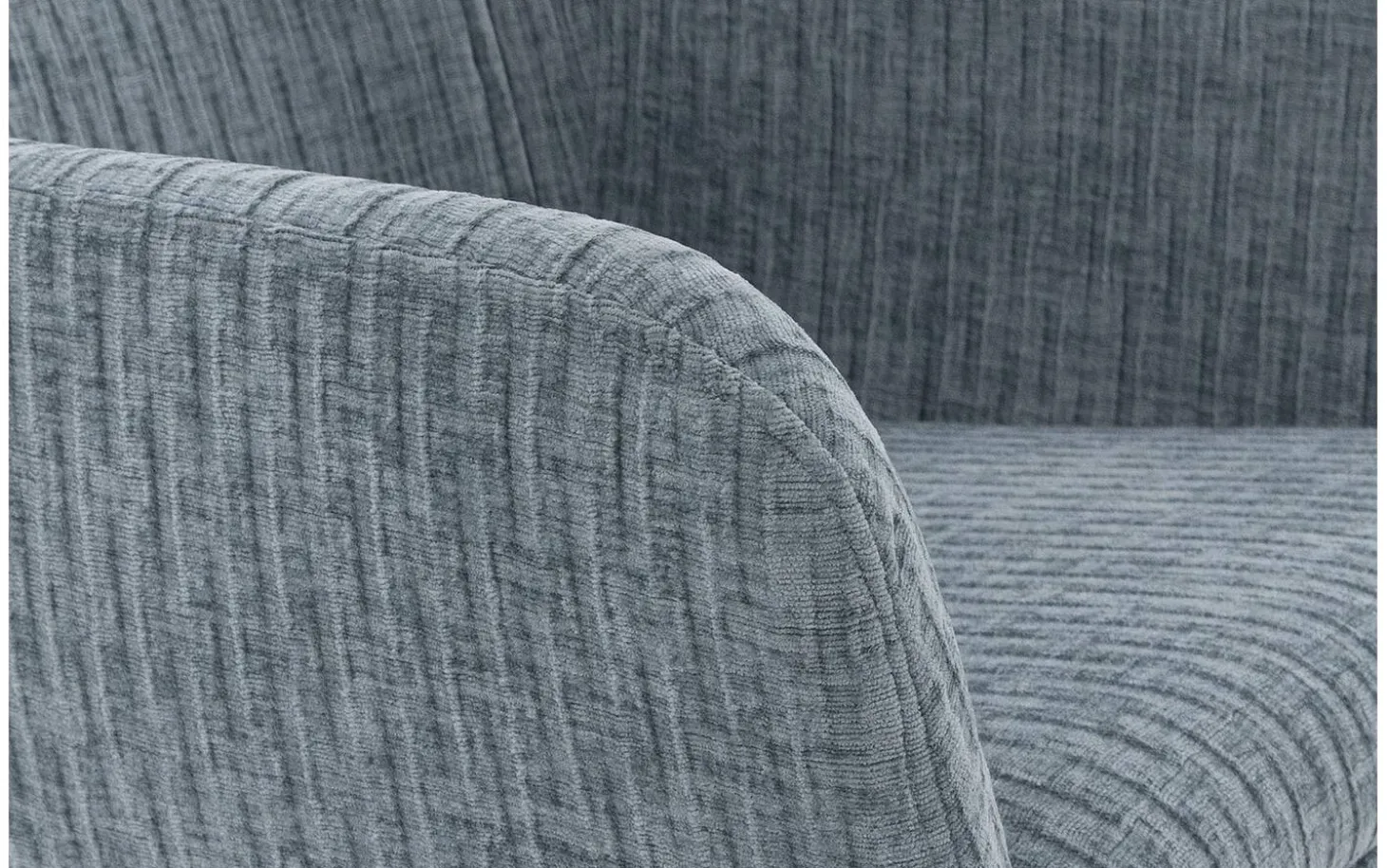 De blauwe ribstof geeft Ysmay een moderne en speelse uitstraling. Het materiaal heeft een frisse textuur die mooi past in verschillende interieurstijlen. De vaste stoffering zorgt voor strakke lijnen en een eigentijds design.