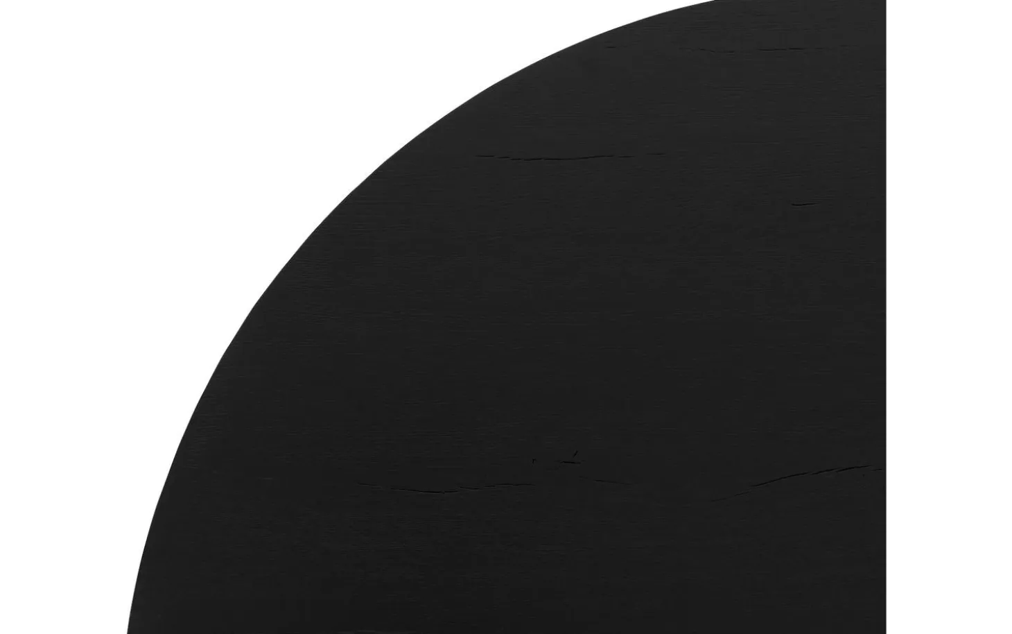 Die Tischplatte ist aus nachhaltigem Eichenholz mit einer schwarzen Soft-Touch-Lackierung gefertigt. Diese Schutzschicht hält die natürliche matte Ausstrahlung intakt und bietet zusätzlichen Schutz gegen Flecken und Kratzer. Die gerade Tischkante von 6 cm Dicke verleiht der Platte einen klaren und zeitlosen Charakter.