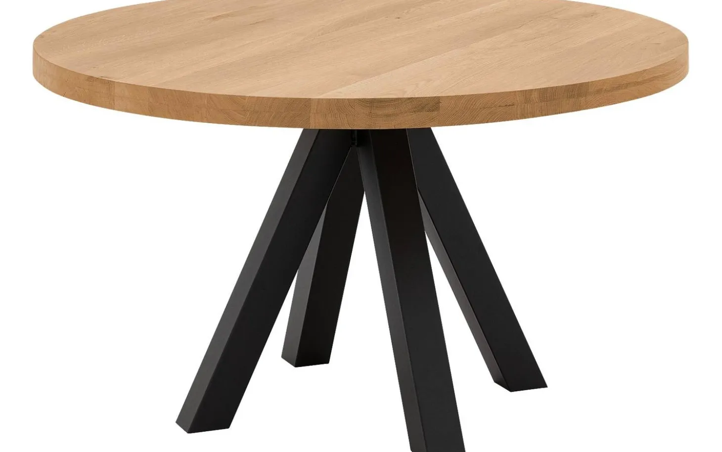 Der Esstisch Blade hat eine runde Form, die perfekt zu gemütlichem Beisammensein passt. Die besonderen Pyramidenfüße aus schwarzem Metall verleihen dem Tisch einen markanten, industriellen Charakter. Mit 4 Sitzplätzen ist dieser Esszimmertisch ideal für die Familie oder ein intimes Dinner.