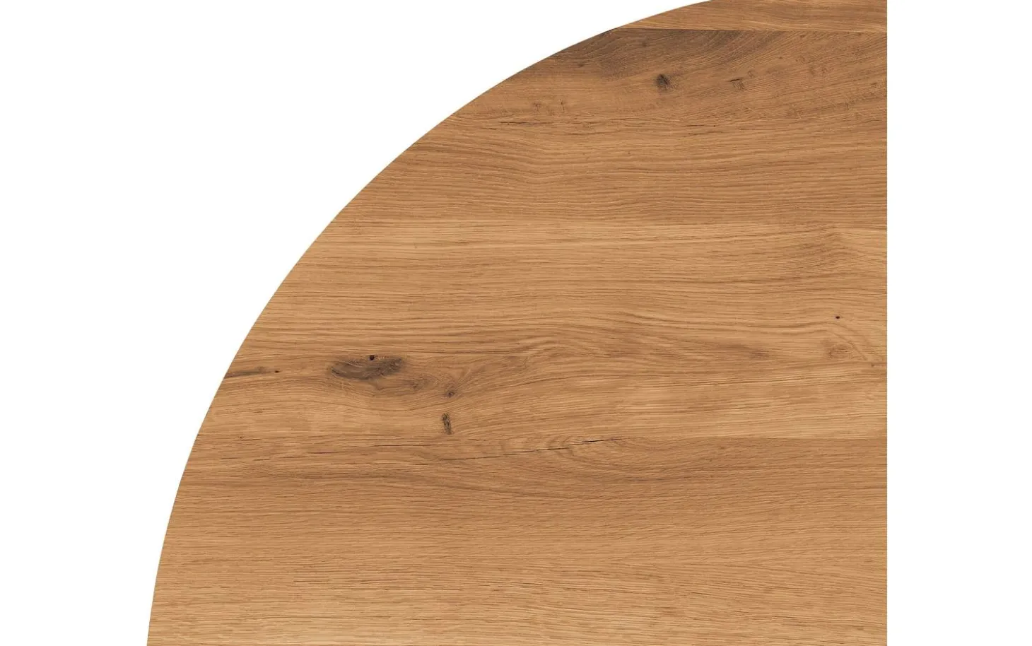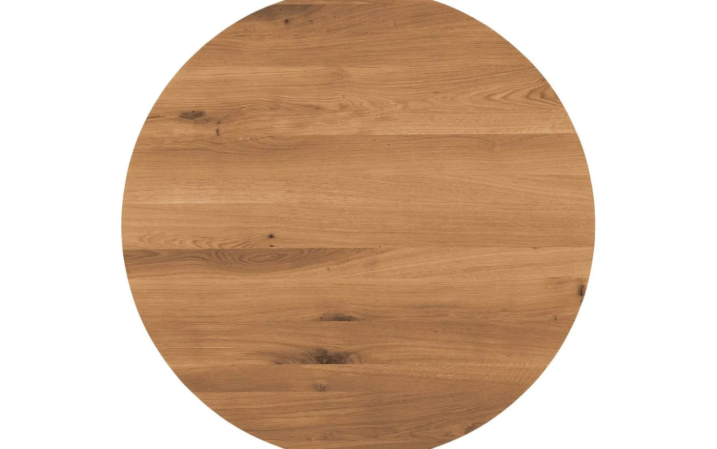 Die runde Platte ist aus Eichenholz mit Soft Touch Lackierung gefertigt. Dies sorgt für eine natürliche matte Ausstrahlung, wobei die Maserung sichtbar und fühlbar bleibt. Die Schutzschicht reduziert die Gefahr von Ringen und Kratzern.