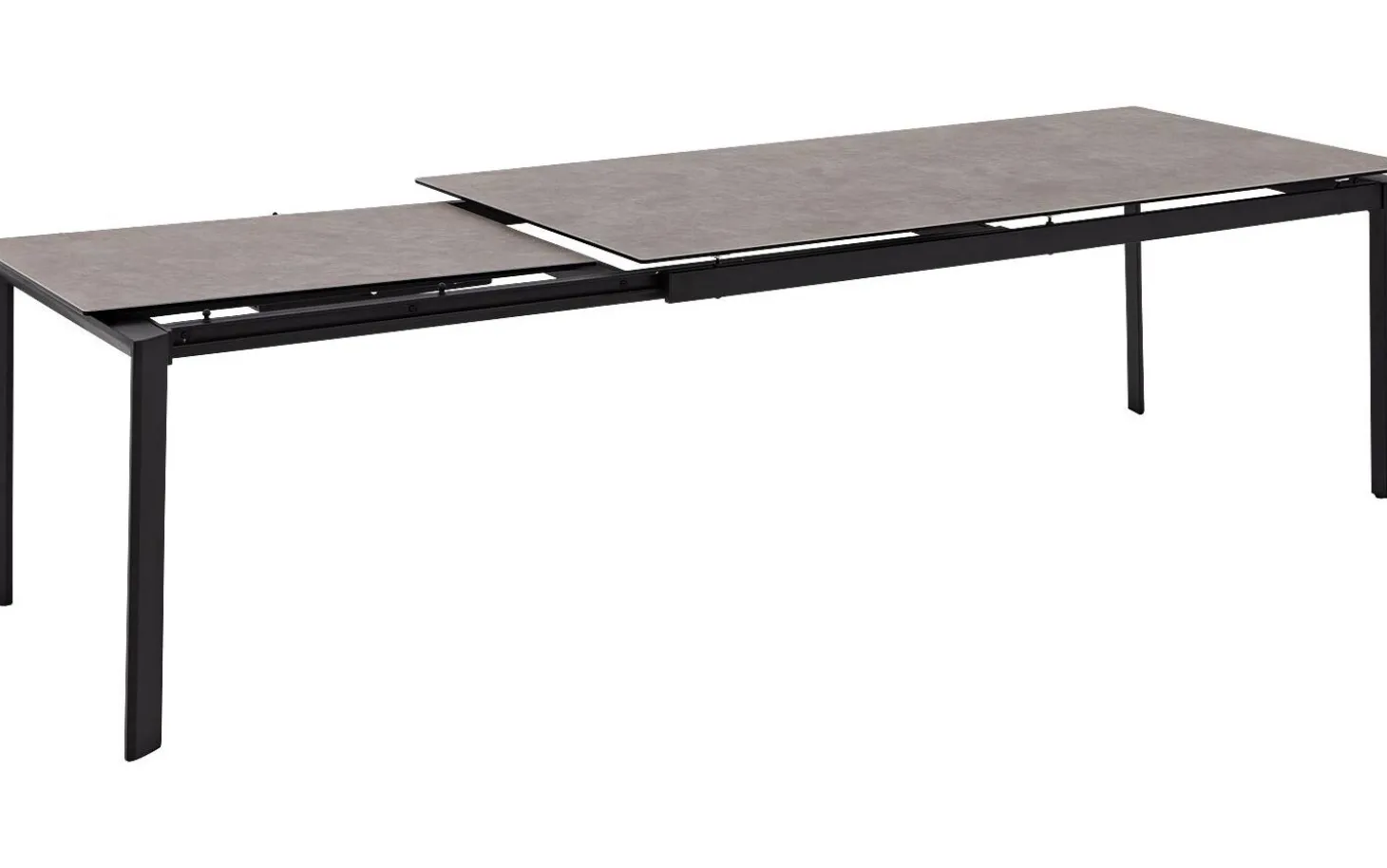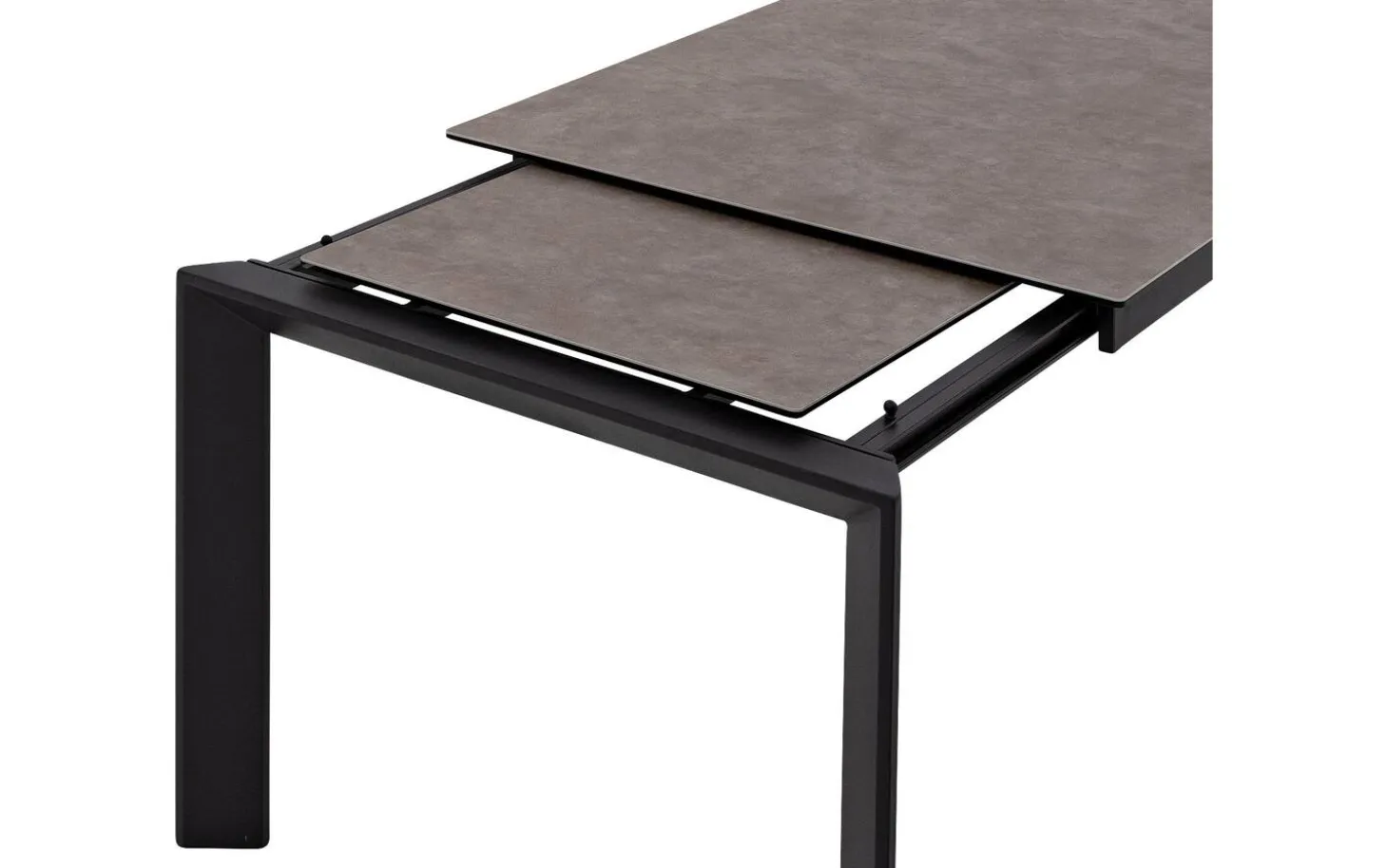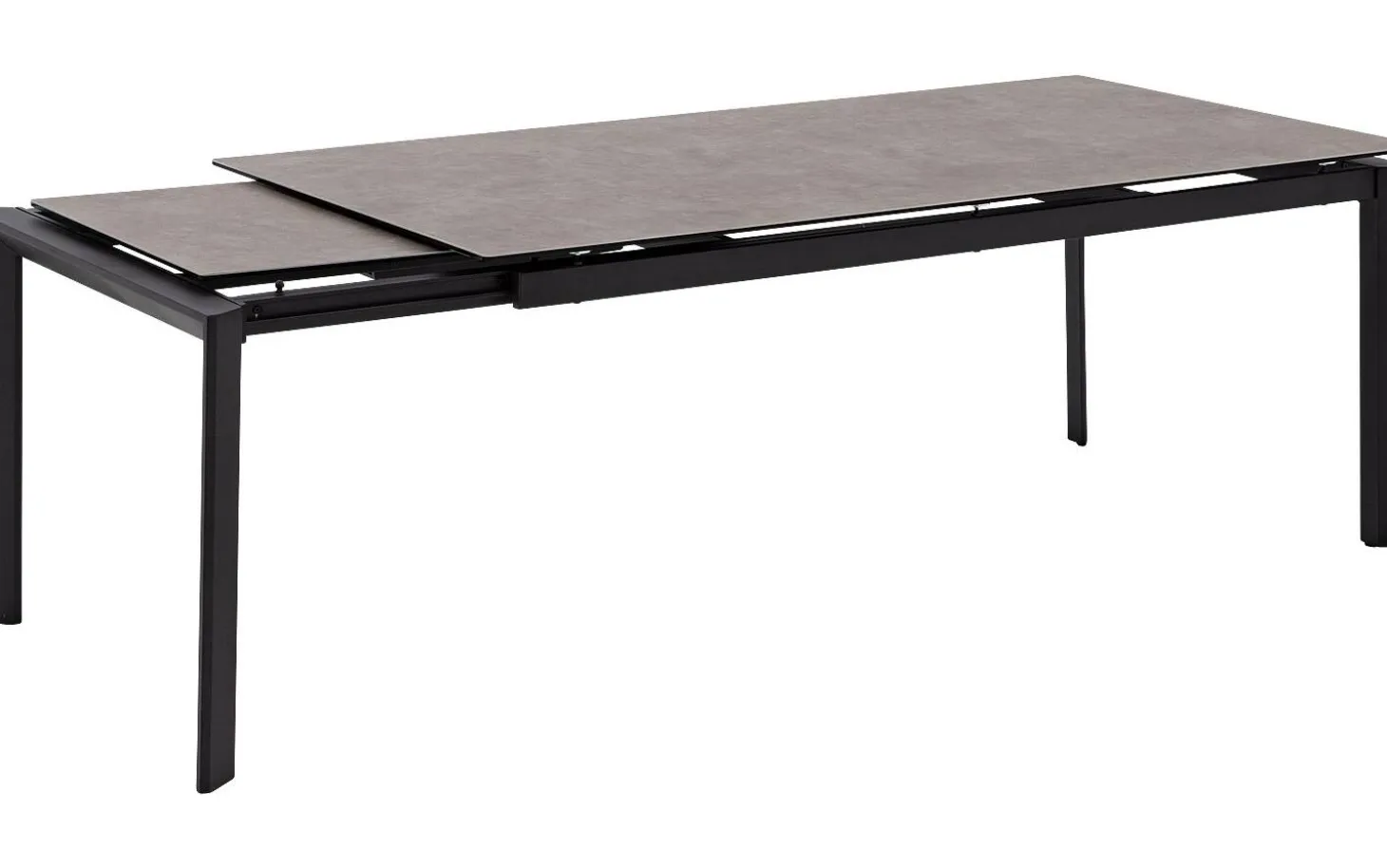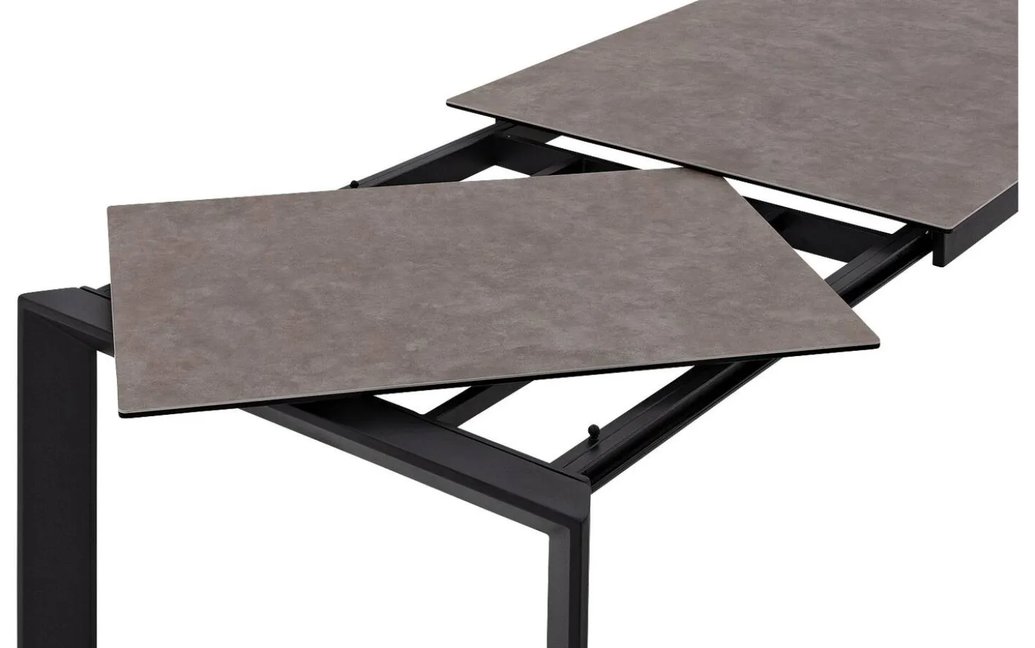 Machen Sie aus jeder Mahlzeit ein besonderes Ereignis mit dem grauen rechteckigen Esstisch Eliana! Dieser ausziehbare Esstisch ist perfekt für sowohl intime Dinner als auch große Zusammenkünfte dank des praktischen Ausziehsystems von 70 cm. Die Keramikplatte ist hitzebeständig und leicht zu pflegen, ideal für geschäftige Familien. Mit dem schlanken rechteckigen Fuß aus schwarzem Metall bietet Eliana Funktionalität und zeitgemäße Ausstrahlung in einem.