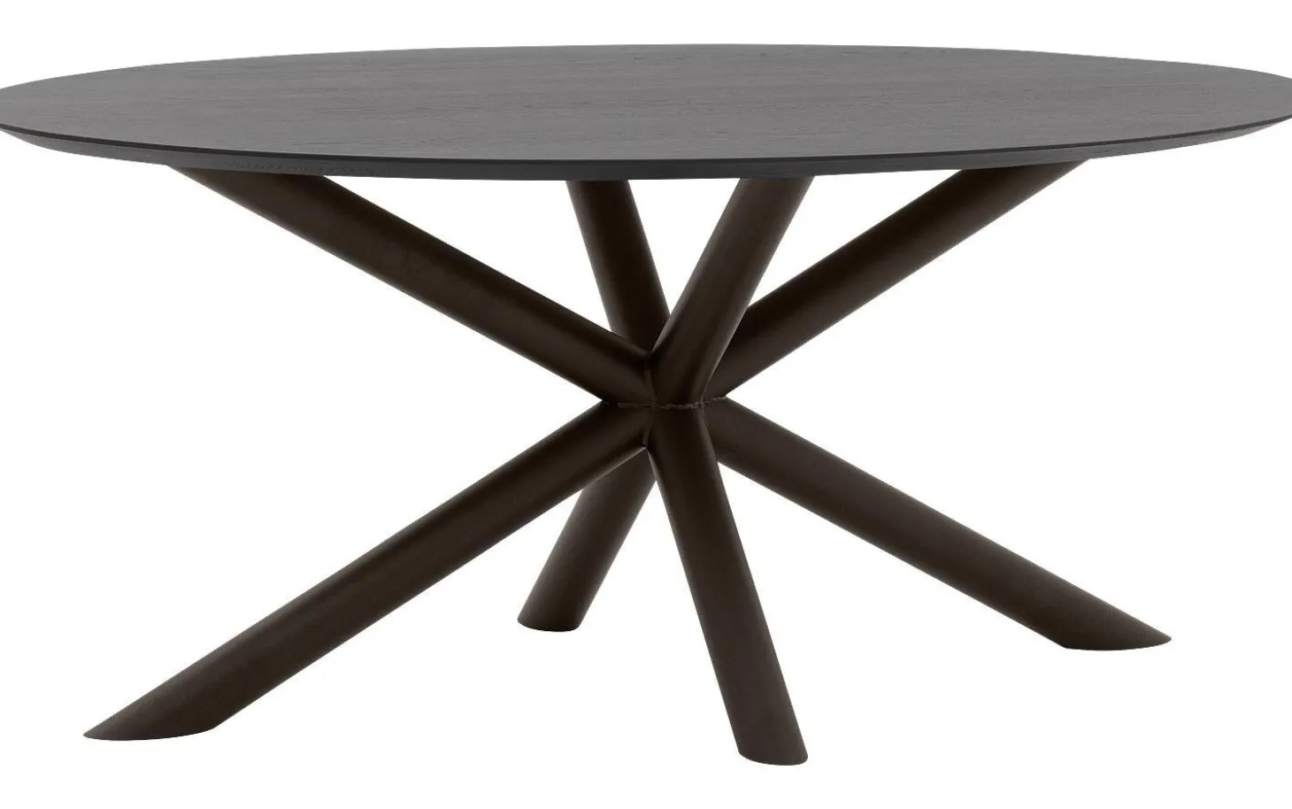 Der Esstisch Gs-1302 hat eine elegante ovale Form mit einer verjüngten Platte, die eine minimalistische Ausstrahlung verleiht. Das Kreuzfußgestell aus runden Rohren in Aged Metal sorgt für eine kraftvolle, robuste Basis, die wirklich auffällt. Der schwarze Eichentisch passt perfekt in ein elegant-schickes Interieur.