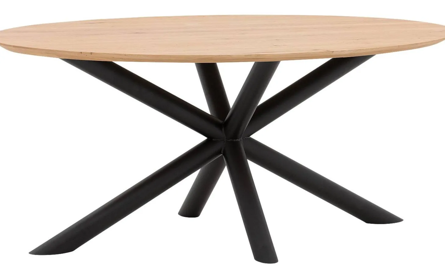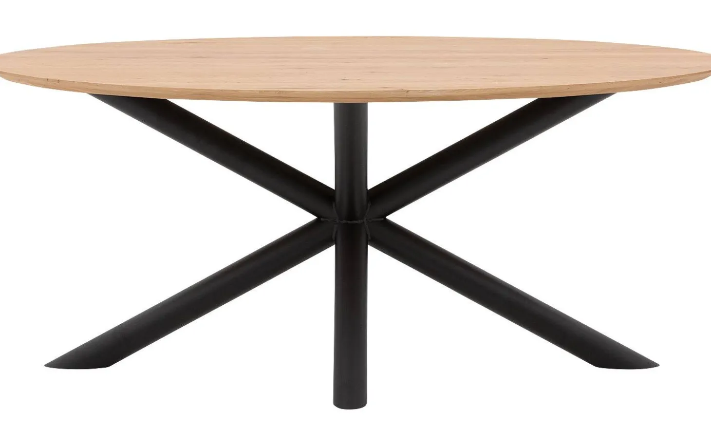 Das Untergestell besteht aus einem Kreuzgestell aus schwarzen runden Rohren, das für Stabilität und einen industriellen Touch sorgt. Durch die ovale Form haben Sie optimalen Komfort am Tisch mit Platz für 4 Personen.