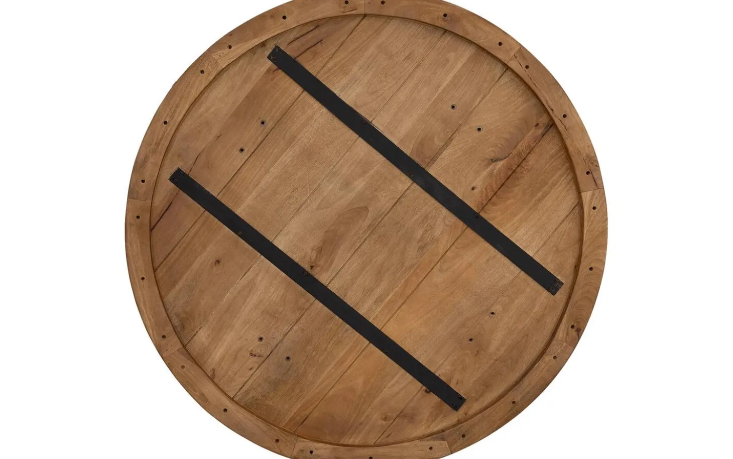 Eettafel Lecce nodigt uit voor gezellige gesprekken. Deze ronde mangohouten eettafel combineert warme houtkleur met een stoer zwart onderstel. De kruispoot geeft kracht en een industrieel tintje, terwijl de ronde vorm zorgt voor een toegankelijke en gastvrije sfeer. Perfect voor intieme diners en gezellige gesprekken.
