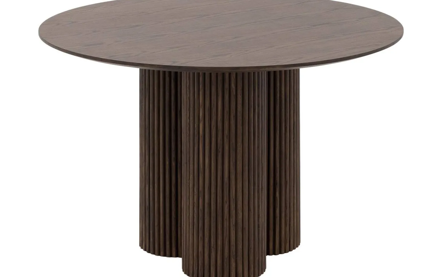 Stijlvol dineren aan eettafel Melani! Deze ronde tafel heeft een bijzondere kolompoot met een lattenstructuur die aansluit bij de andere meubels in de Melani collectie. Het eiken fineer met lakafwerking geeft de tafel een luxe uitstraling, terwijl de stevige constructie garant staat voor duurzaamheid. De warme, neutrale kleur past perfect in diverse interieurstijlen. Een stijlvolle en praktische keuze voor wie op zoek is naar een tafel die zowel esthetisch als functioneel indruk maakt.