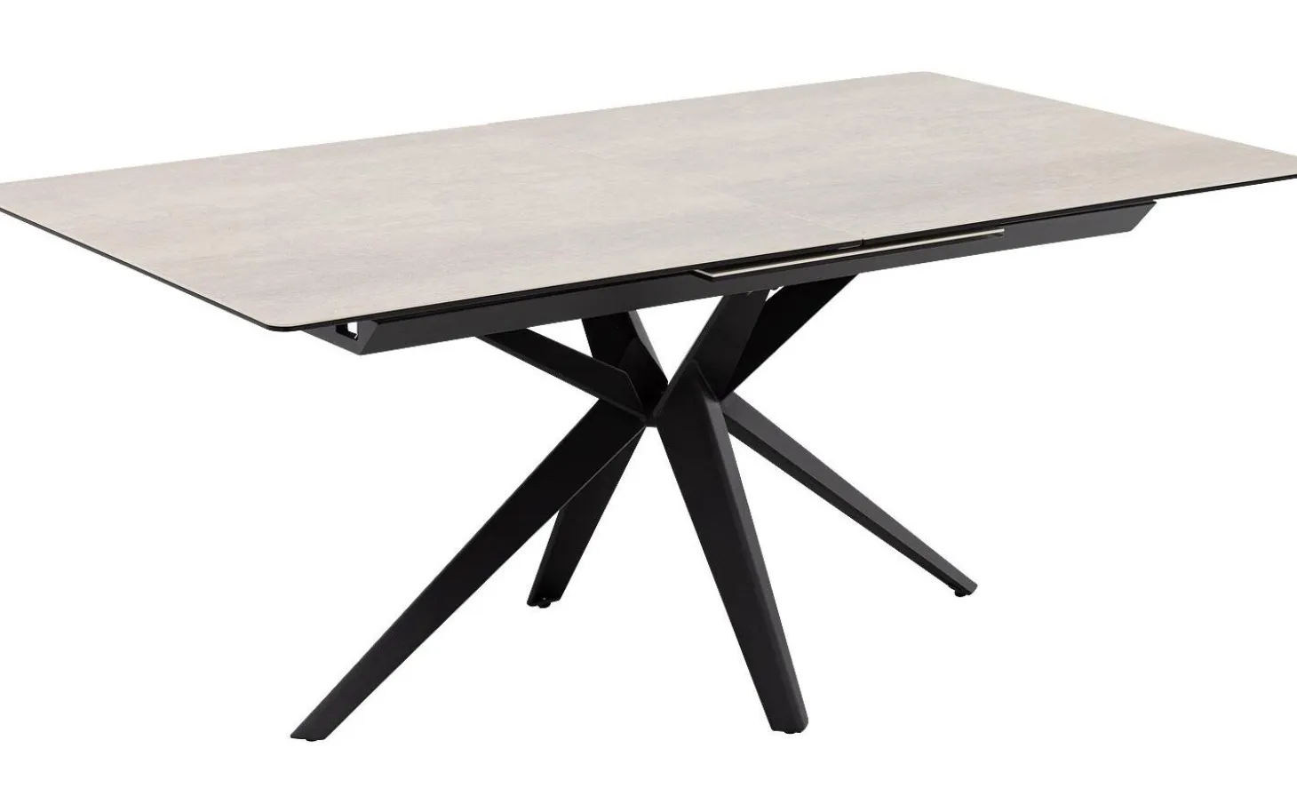Esstisch Milena lädt zu gemütlichen Dinners ein! Dieser weiße rechteckige ausziehbare Esstisch mit Keramikplatte wächst mühelos mit Ihren Plänen mit. Von einem intimen Dinner bis zu einem großen Fest – mit dem praktischen Ausziehsystem von 50 cm ist immer Platz für mehr. Das Kreuzgestell aus schwarzem Metall sorgt für eine moderne Note und stabile Basis.