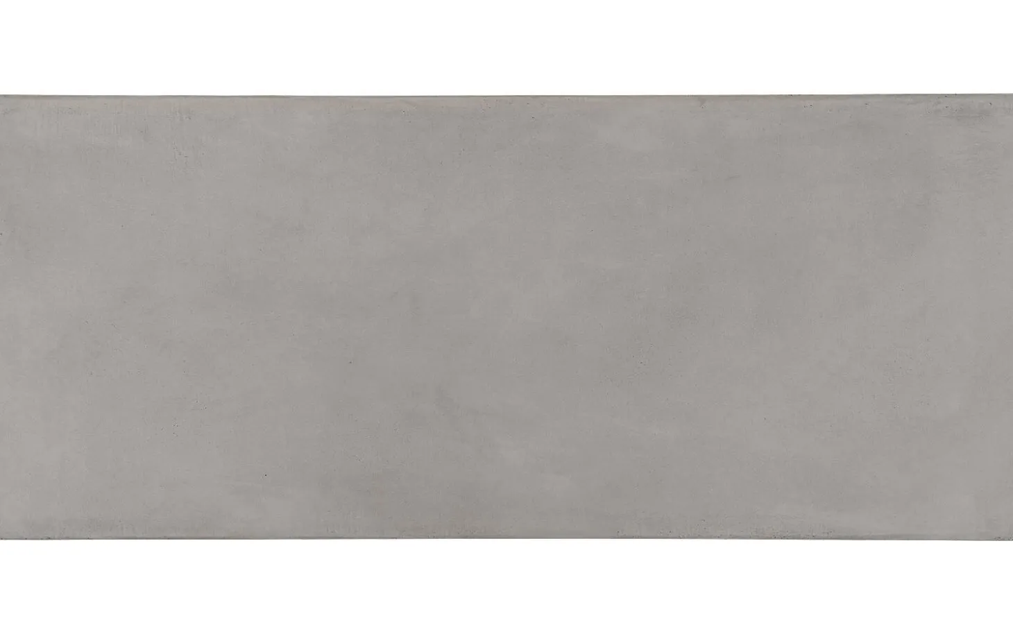 Die graue Tischplatte ist aus MDF mit einer dünnen Betonschicht in Charquel-Farbe gefertigt. Diese Betonoptik hat natürliche Unregelmäßigkeiten wie kleine Löcher und Risse, die die industrielle Ausstrahlung verstärken. Die gerade Kantenverarbeitung hält das Design straff und zeitlos.