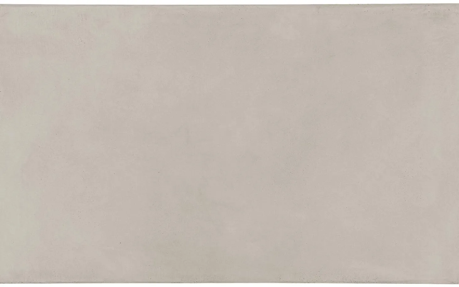 Stone hat eine klare rechteckige Form mit elegant abgerundeten Ecken, die den industriellen Look weicher machen. Das Kreuzgestell aus schwarz pulverbeschichtetem Stahl sorgt für eine kraftvolle Basis, während die graue Betonoptik-Platte eine robuste aber raffinierte Ausstrahlung verleiht.