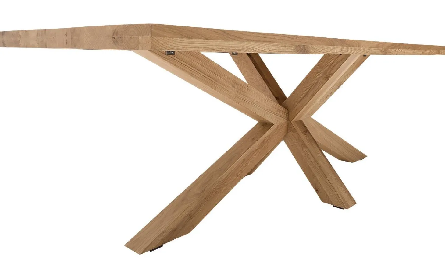 Das besondere Kreuzgestell-Untergestell ist aus demselben hellen Eichenholz wie die Platte gefertigt. Diese spezielle Beinkonstruktion sorgt nicht nur für Stabilität, sondern ist auch ein echtes Statement in Ihrem Esszimmer.
