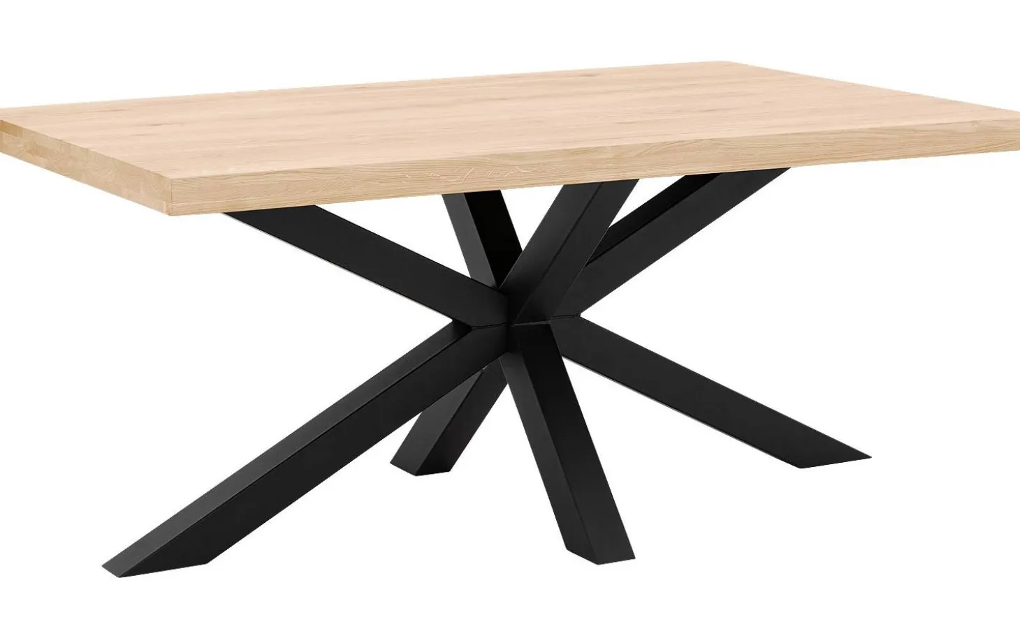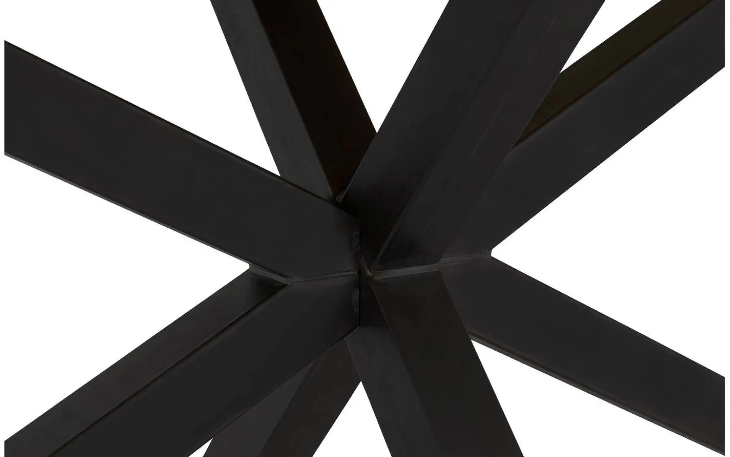 Der schwarze Kreuzfuß sorgt für Stabilität und einen kraftvollen industriellen Akzent. Durch die clevere Konstruktion haben Sie ausreichend Beinfreiheit und der Tisch steht fest an seinem Platz.