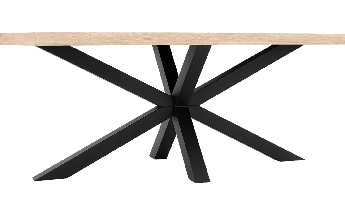 Esstisch Blend hat eine rechteckige Form, die zu fast jedem Wohnstil passt. Die massive Eichenkonstruktion mit Kreuzfuß aus schwarzem Stahl verleiht dem Tisch eine robuste, industrielle Ausstrahlung. Mit 4 Sitzplätzen ist dieser Tisch ideal für die Familie und gemütliche Abendessen.