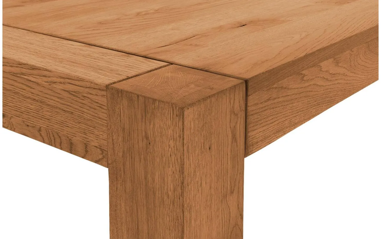 Die quadratischen Beine sind durch die Platte geführt für zusätzliche Stabilität. Durch die geraden Linien und die natürliche helle Eichenfarbe ist Roots eine zeitlose Wahl, die jahrelang hält.