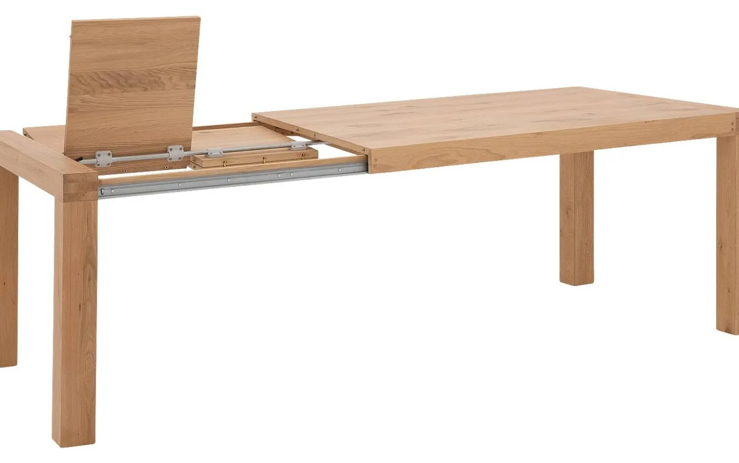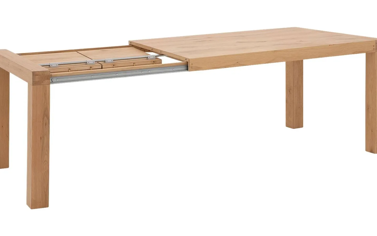 Das Ausziehsystem besteht aus zwei Teilen von je 40 Zentimetern und wird unter der Platte verstaut. Rollen in den Beinen machen das Verlängern besonders einfach. So schaffen Sie im Handumdrehen 80 cm zusätzlichen Platz am Tisch.