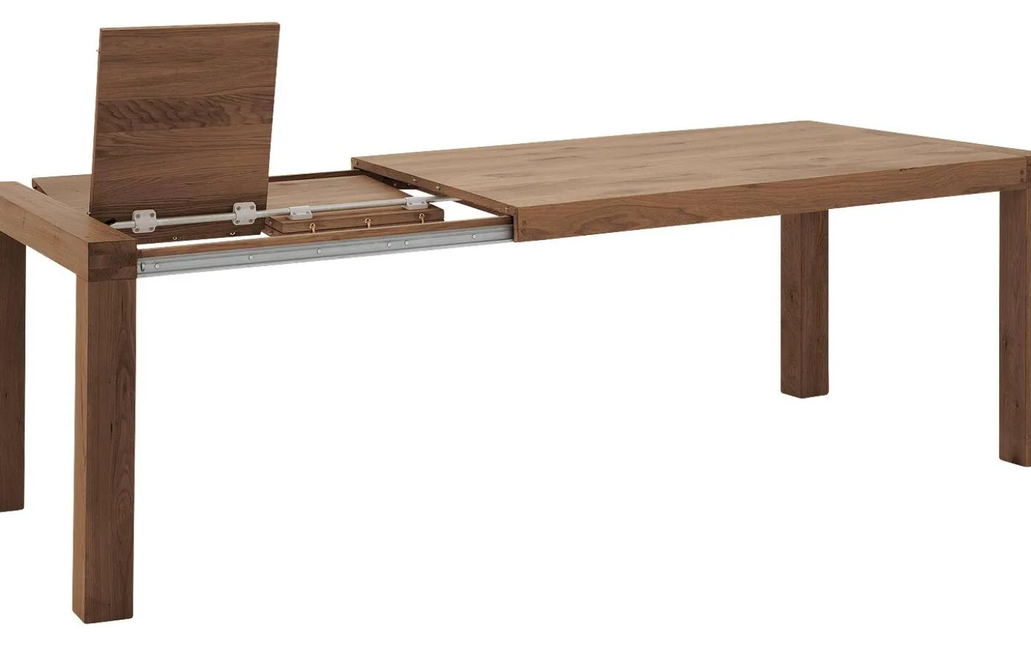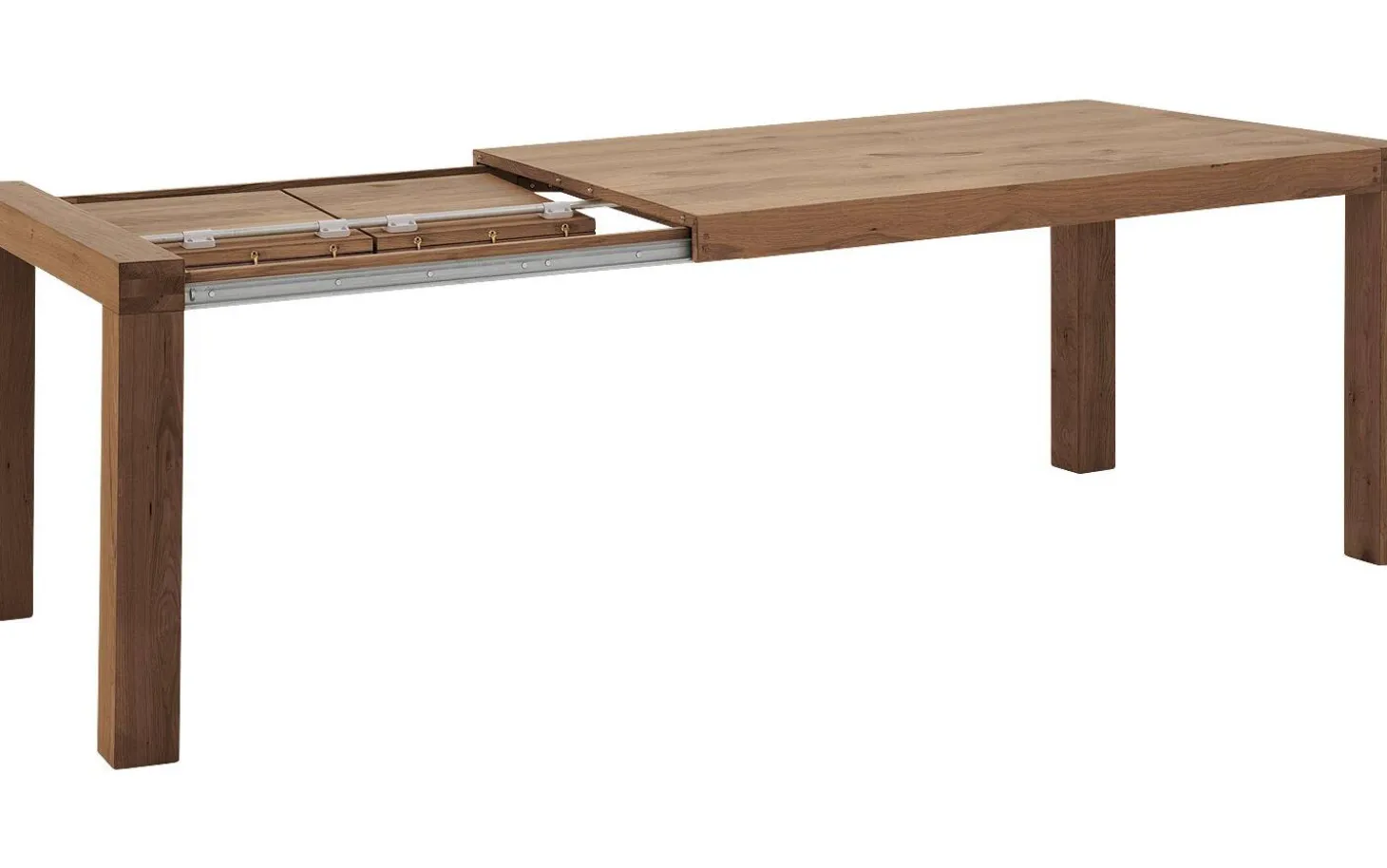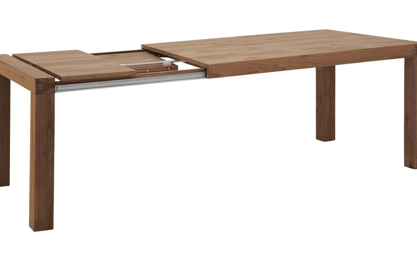 Besonders praktisch sind die integrierten Rädchen in zwei Beinen, wodurch das Ausziehen mühelos gelingt. So verwandeln Sie Ihren Esstisch von einem kompakten Familientisch zu einem großzügigen Tisch für große Gesellschaften.