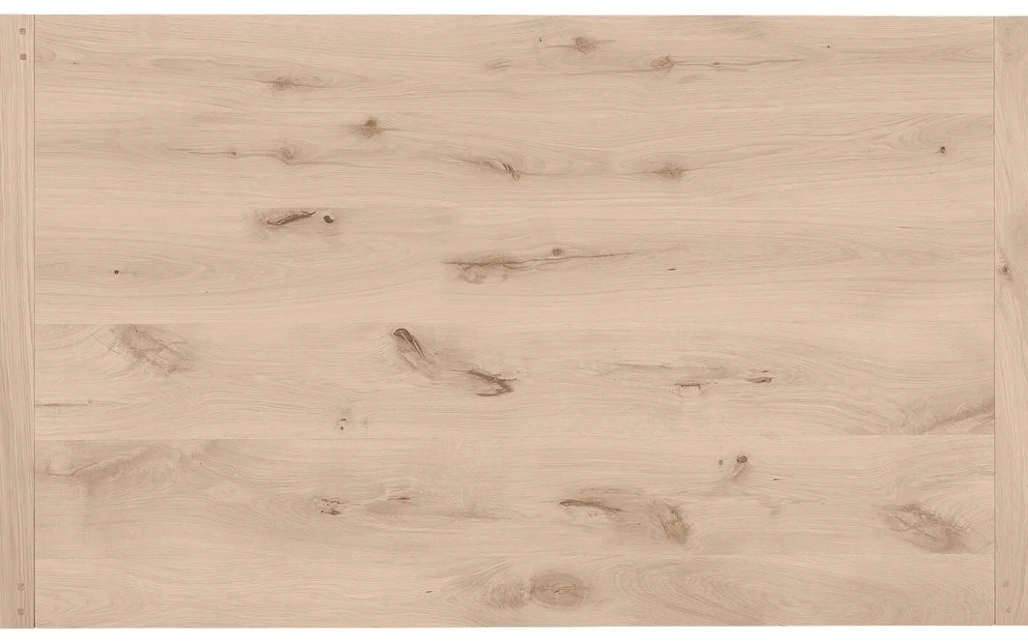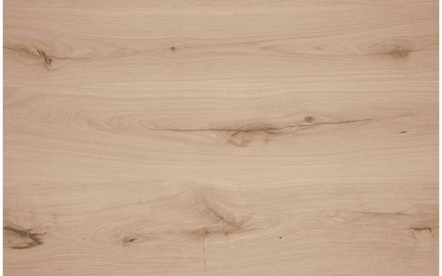 - Weiße Eichenholzplatte mit sanfter Maserung und natürlichen Ästen
