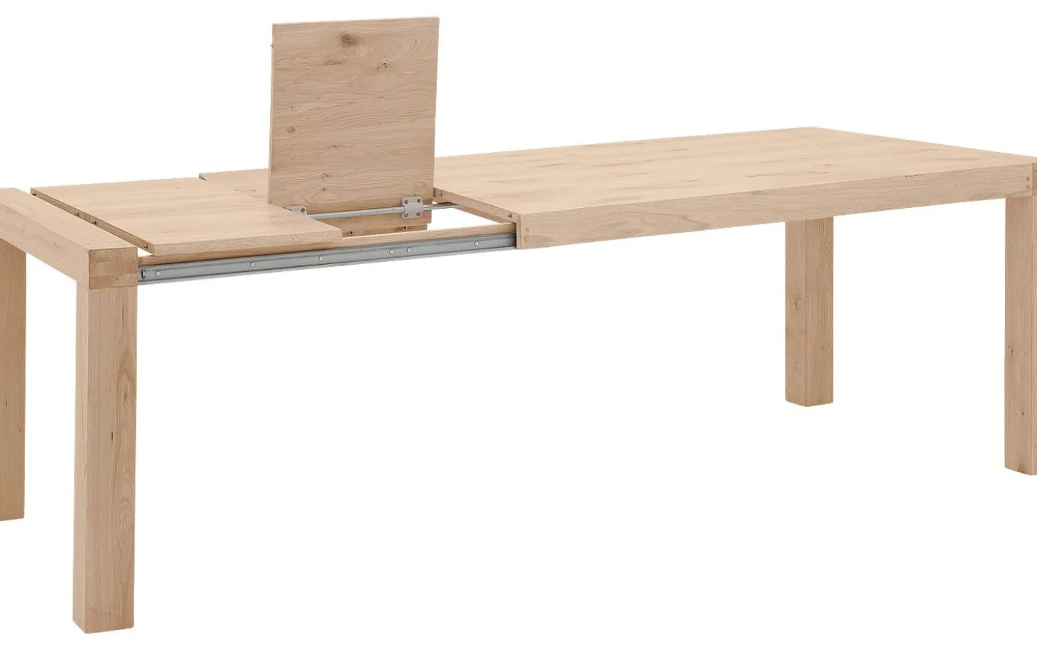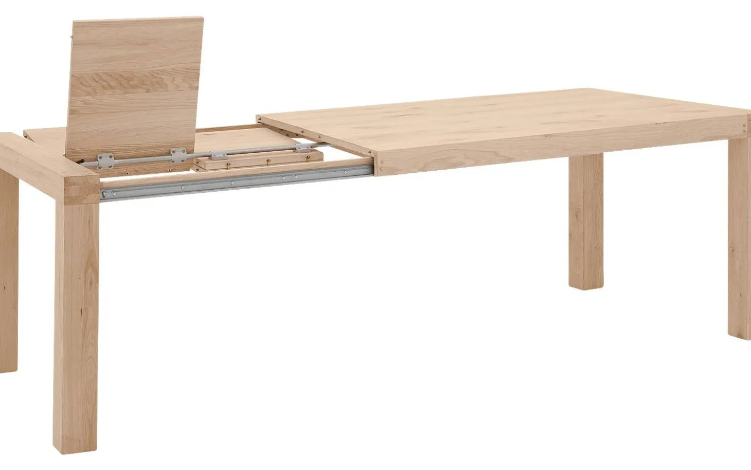 Das Ausziehsystem besteht aus zwei Teilen von 40 cm und ist praktisch unter der Platte verstaut. Rollen in den Beinen machen das Ausziehen mühelos. So haben Sie immer Platz für zusätzliche Gäste, ohne dass der Tisch permanent groß sein muss.