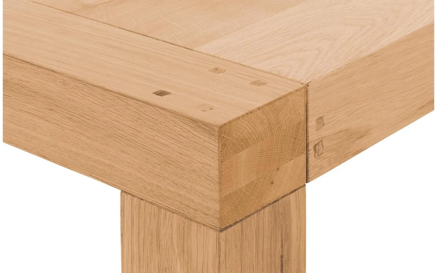 - Quadratische Beine durch die Platte für Stabilität und klares Design