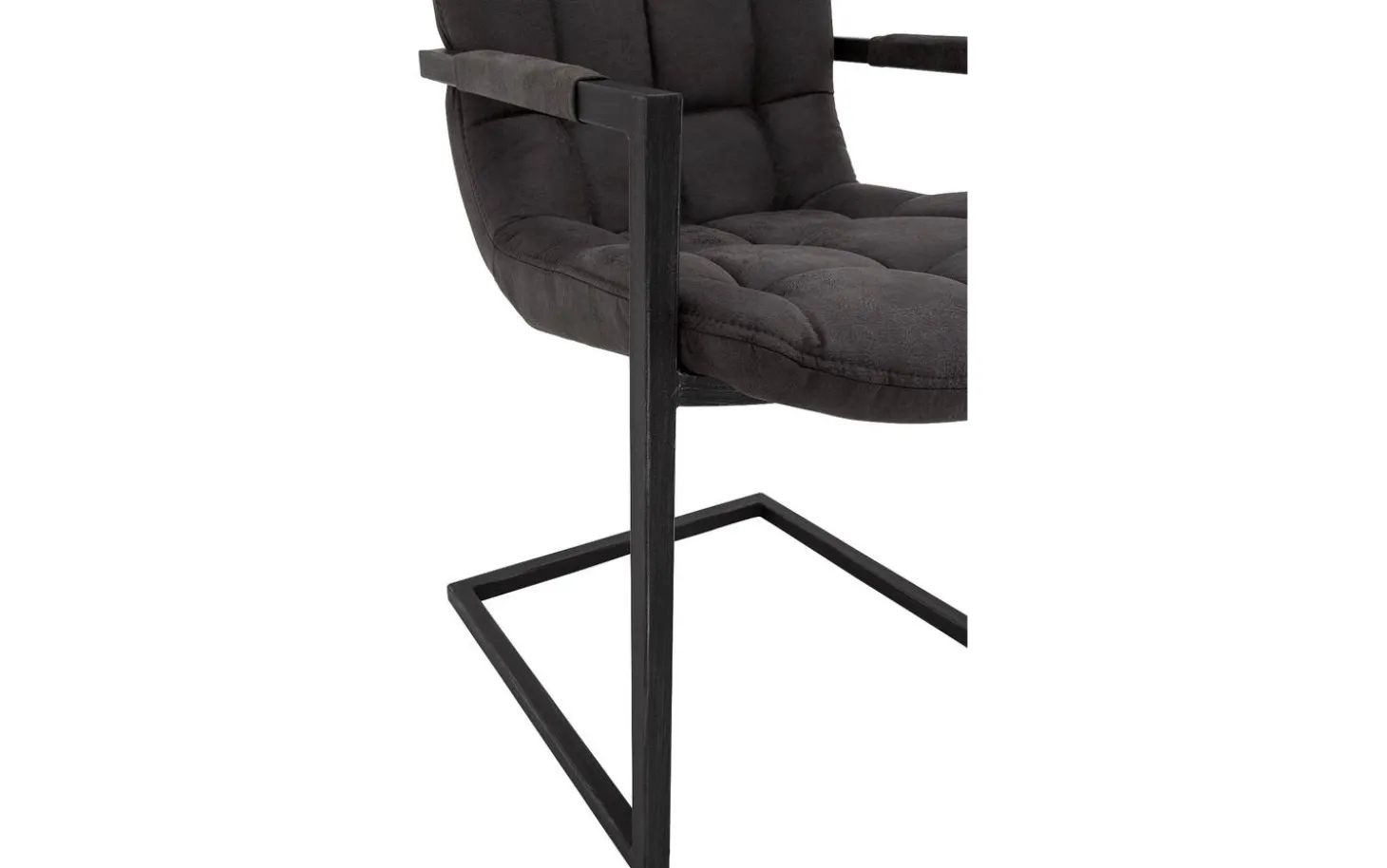 Grauer Esszimmerstuhl Steven mit Armlehne ist ein robustes Modell mit sehr starken Eigenschaften. Der Sitz mit runden Formen ist mit eisenstarkem Mikrofaser in Anthrazit bezogen, der sich leicht reinigen lässt – ideal mit Kindern. Der Stuhl wird von einem metallenen Freischwinggestell getragen, das sich während des Sitzens leicht mitbewegt, für zusätzlichen Komfort während langer Essen.