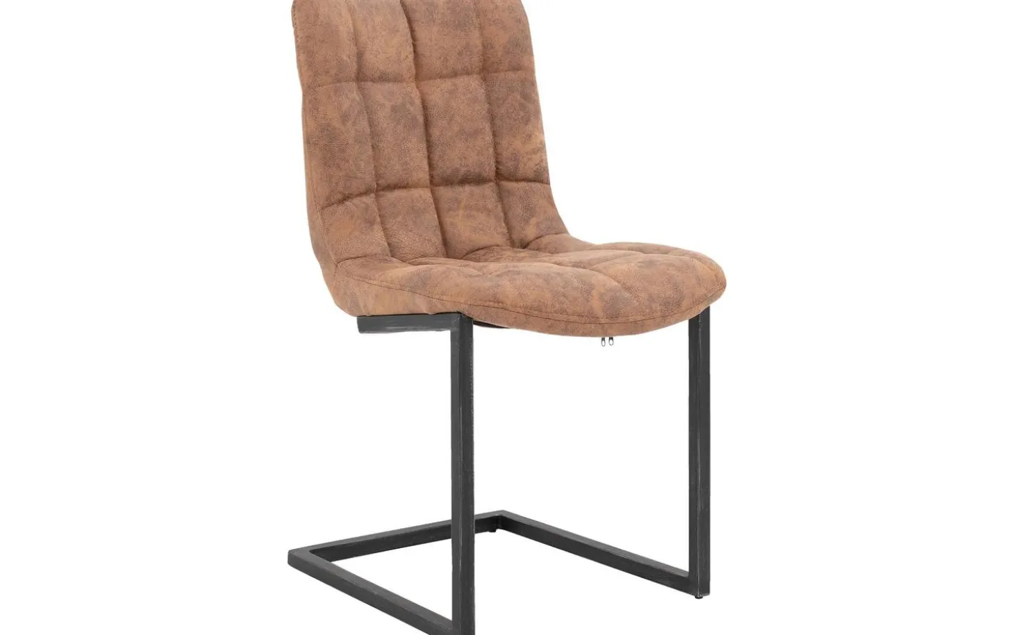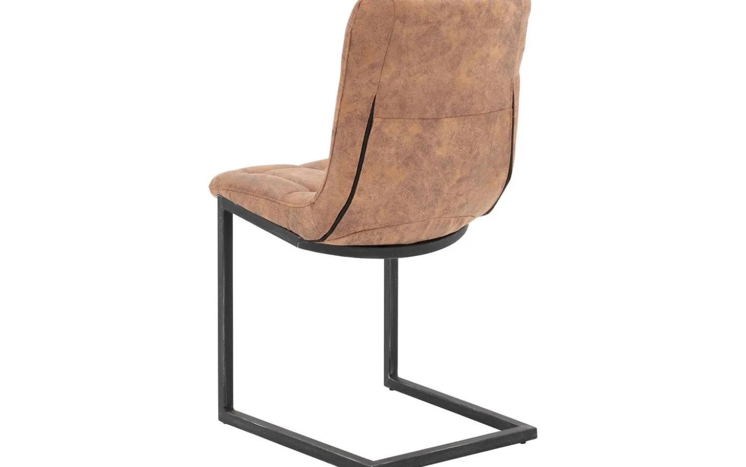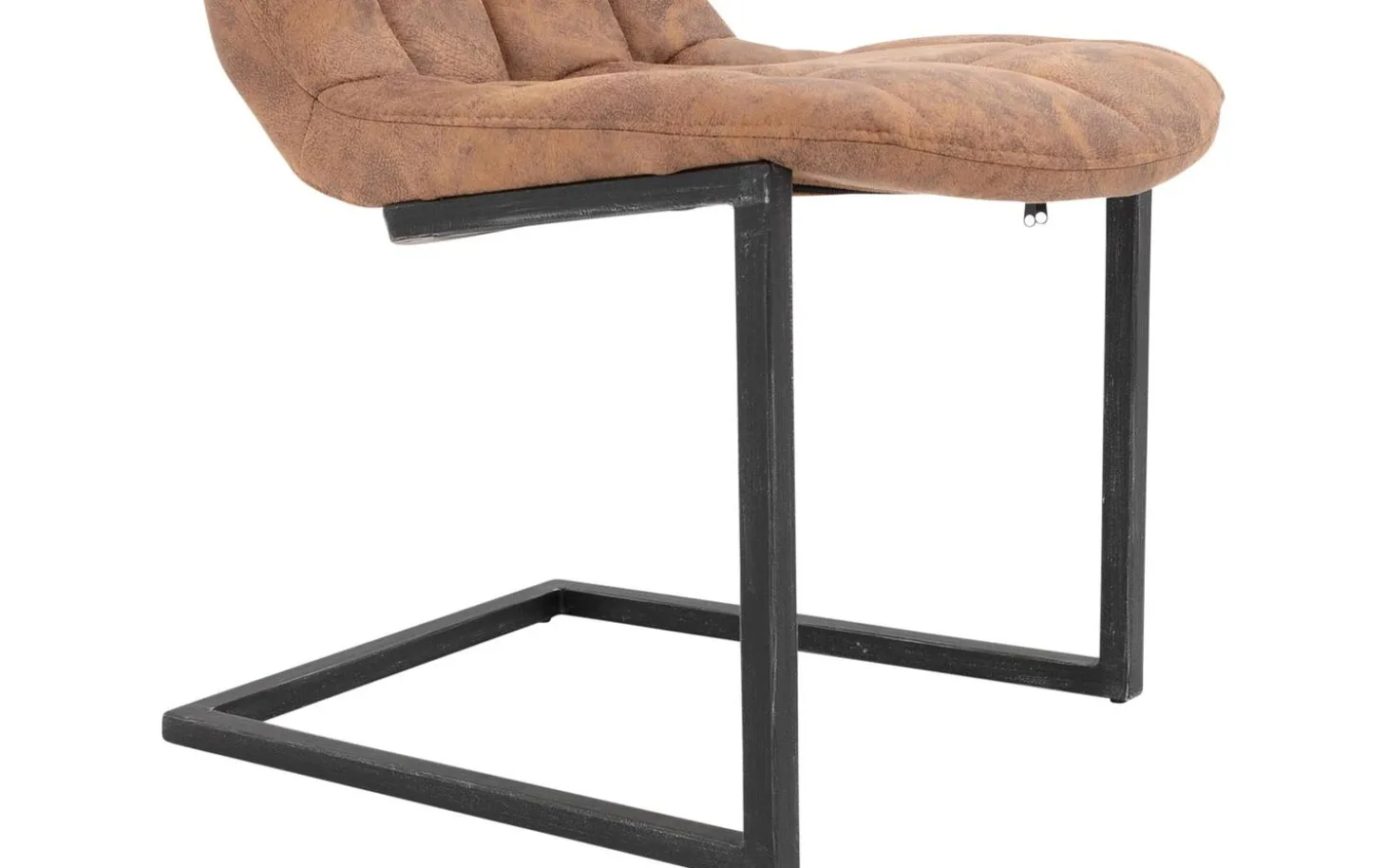Das robuste schwarze Vintage-Metallgestell mit Freischwingfunktion verleiht dem Stuhl eine industrielle Ausstrahlung. Unter den Füßen befinden sich Gleitschutznoppen, um Kratzer auf Ihrem Boden zu vermeiden. Die feste Polsterung sorgt für einen klaren und modernen Look, der über Jahre schön bleibt.