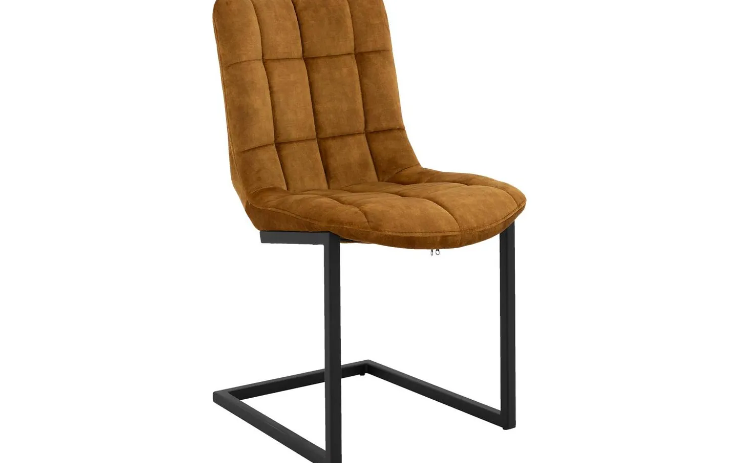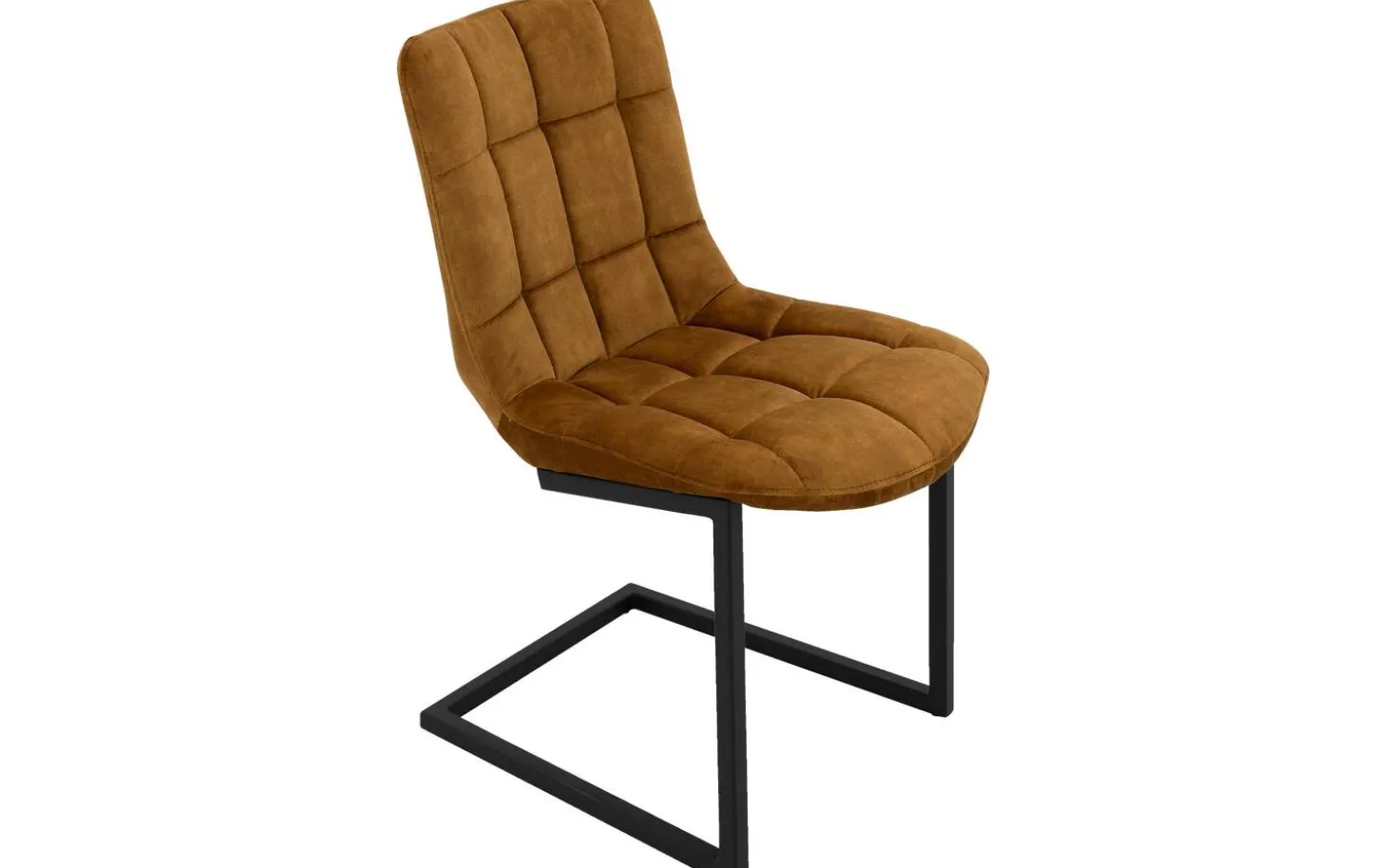 Das schwarz matt lackierte Freischwinggestell bildet einen schönen Kontrast zur goldfarbenen Polsterung und passt perfekt in ein urbanes industrielles Interieur. Die eleganten Linien der Rückenlehne und Sitzfläche verleihen diesem Stuhl für den Esstisch eine zeitlose Ausstrahlung.
