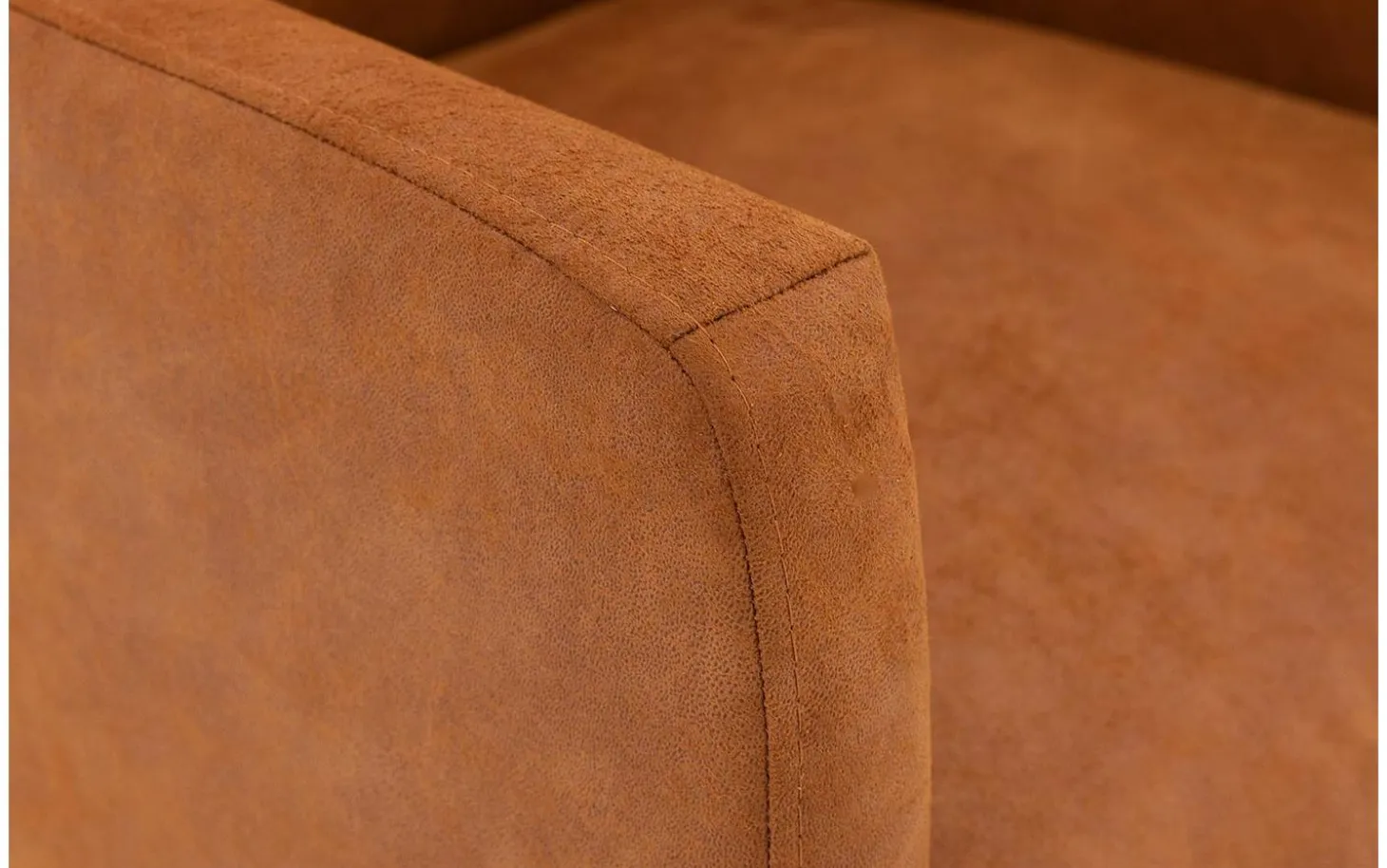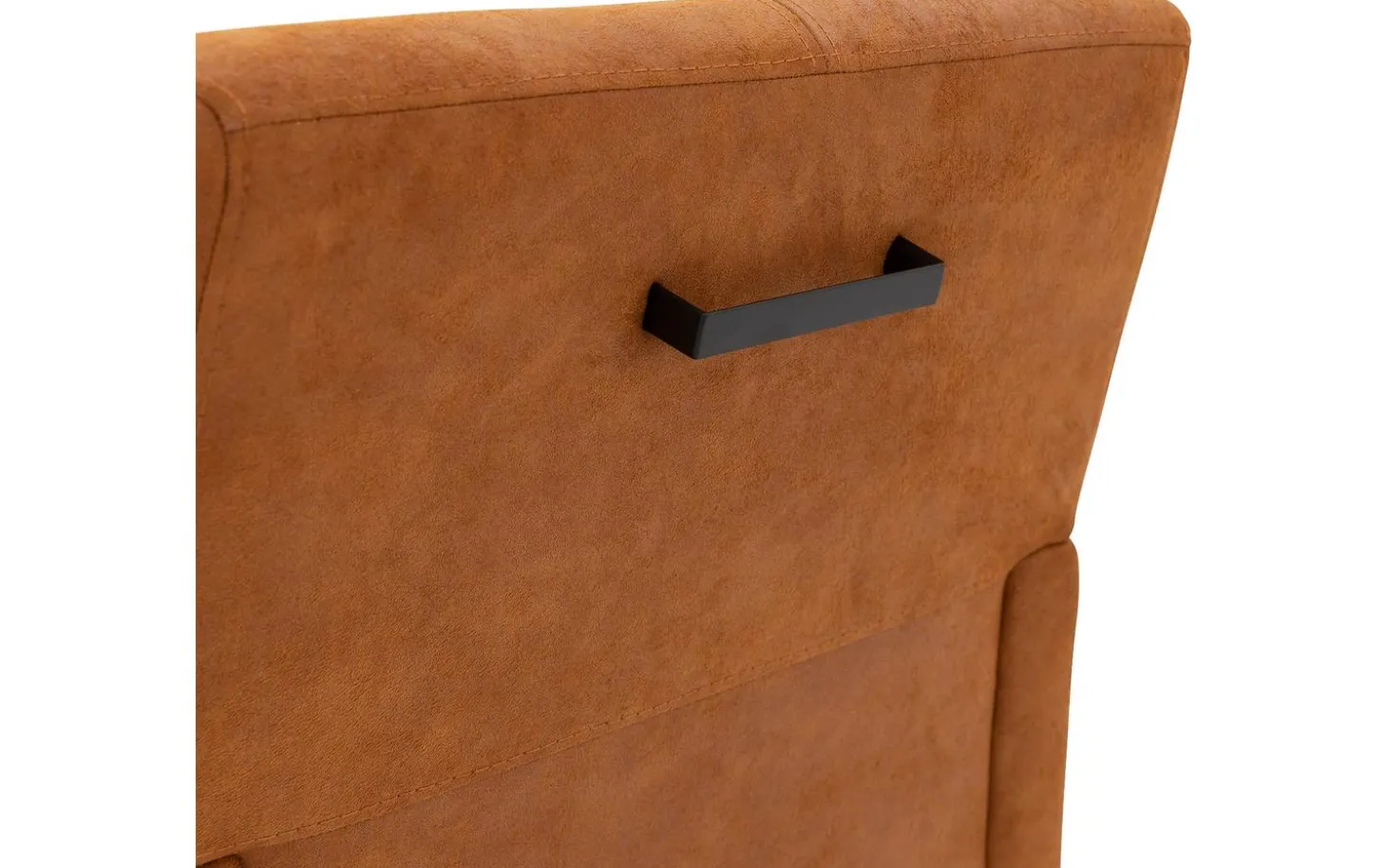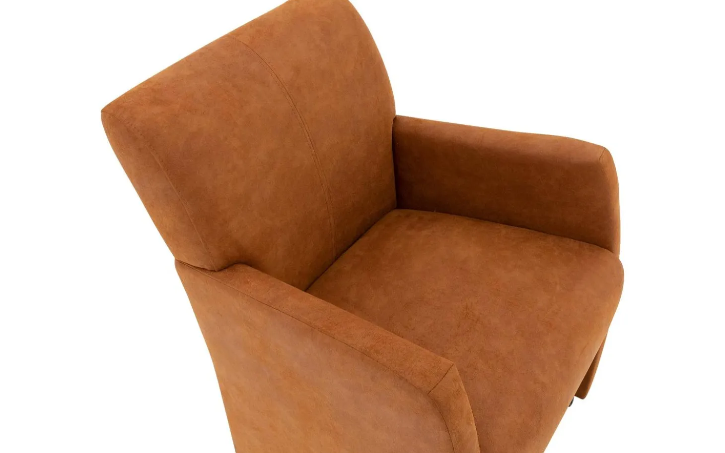Cognac Esszimmerstuhl Alex mit Armlehne in Mikroleder kombiniert zeitloses Design mit praktischem Komfort. Dieser stilvolle Esszimmerstuhl in warmem Cognacton bringt sofort Atmosphäre in Ihr Esszimmer. Dank der komfortablen Schaumstoffpolsterung, der robusten Nosag-Federung und der praktischen schwarzen Rollen rücken Sie mühelos an den Tisch. Der Griff an der Rückenlehne macht das Verschieben dieses Stuhls besonders praktisch.