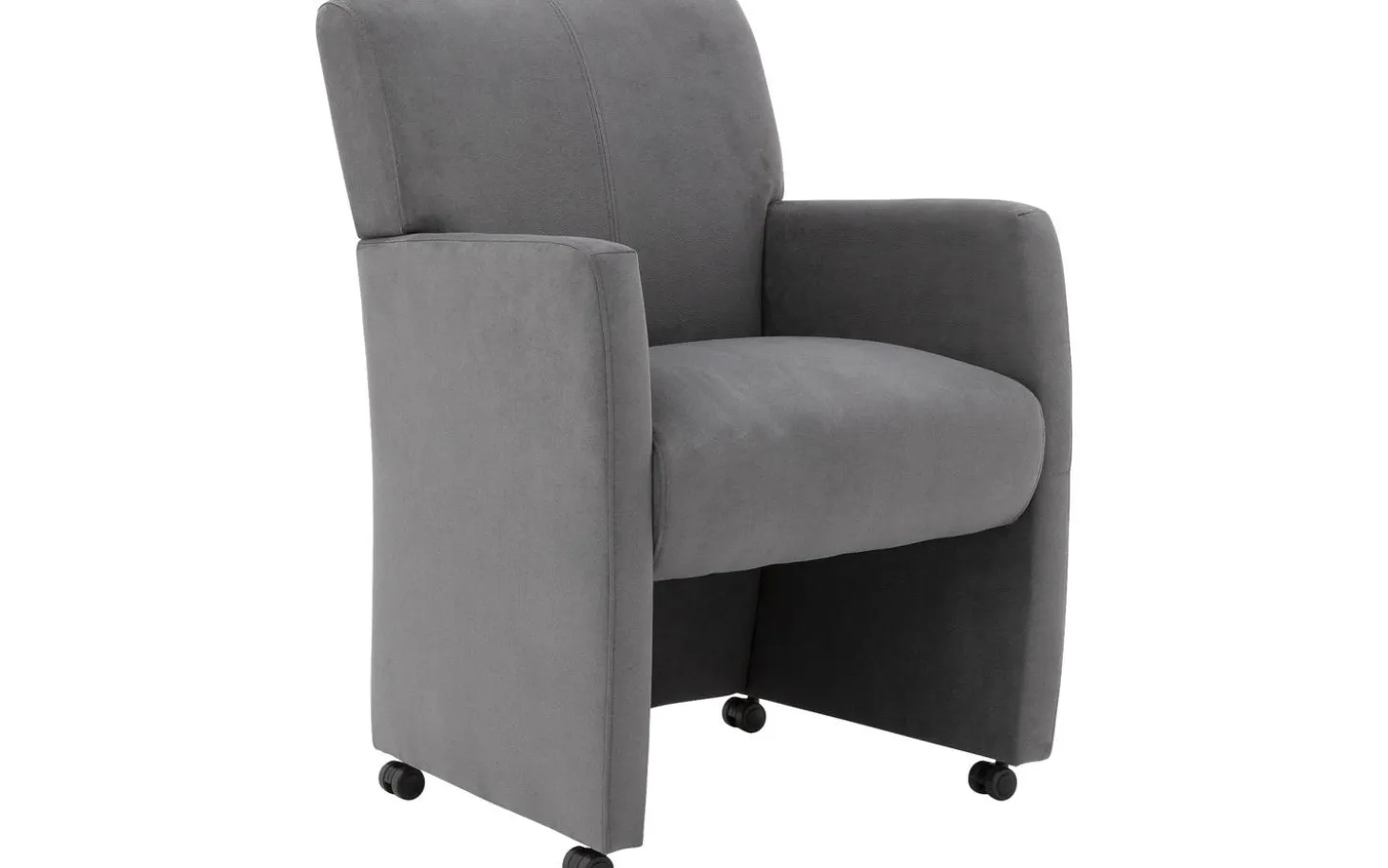 Grauer Esszimmerstuhl Alex mit Armlehne bringt Komfort und Stil in Ihr Esszimmer. Dieser Stuhl aus Stoff hat ein zeitloses Design, das zu verschiedenen Wohnstilen passt. Der fein gewebte graue Stoff sorgt für eine warme, gemütliche Ausstrahlung rund um Ihren Esstisch. Mit praktischen Details wie schwarzen Rollen und einem praktischen silbernen Griff bewegen Sie den Stuhl mühelos – perfekt für lange Essen mit Familie und Freunden.