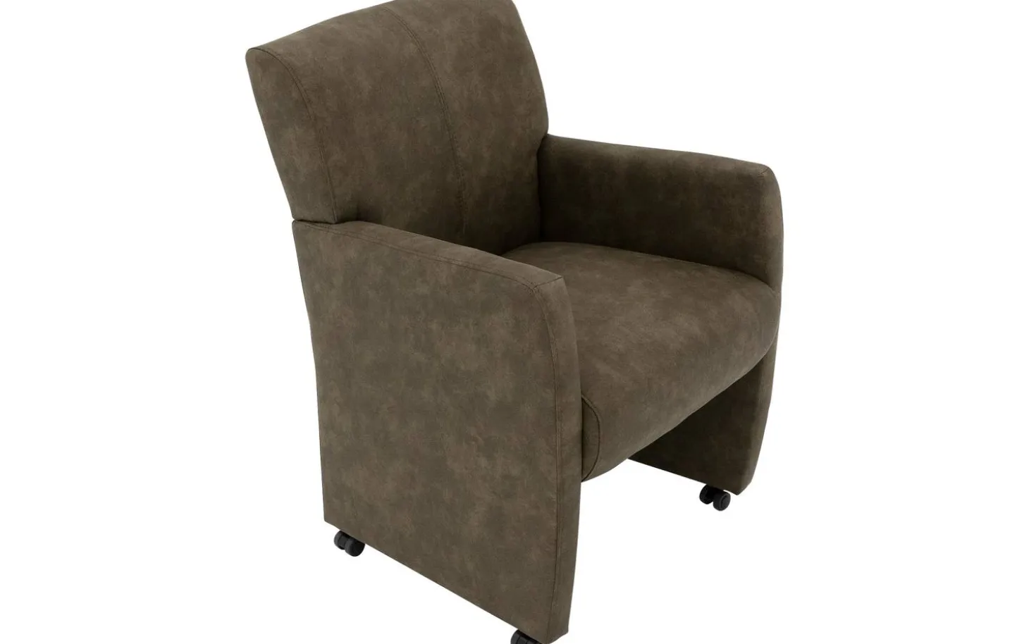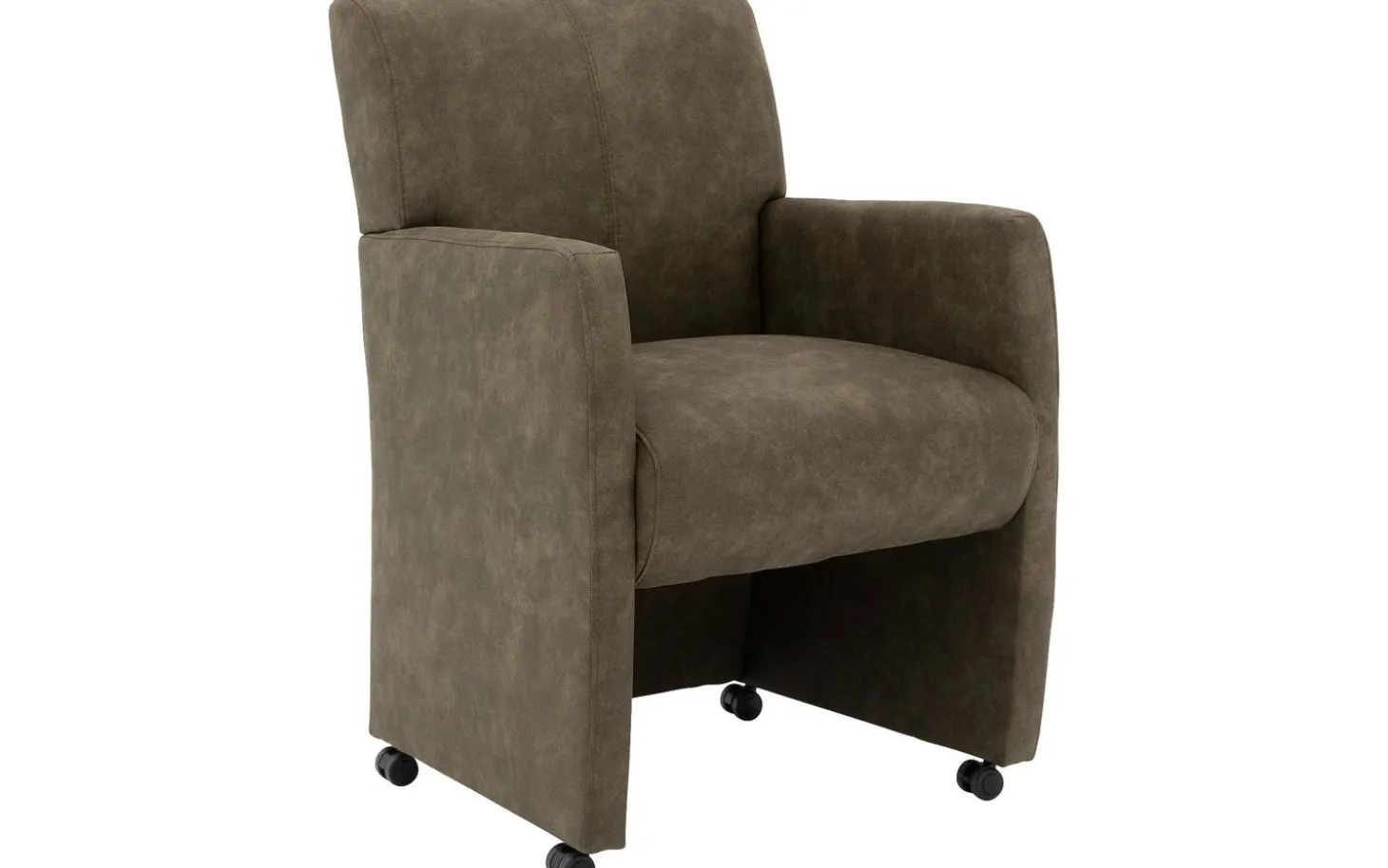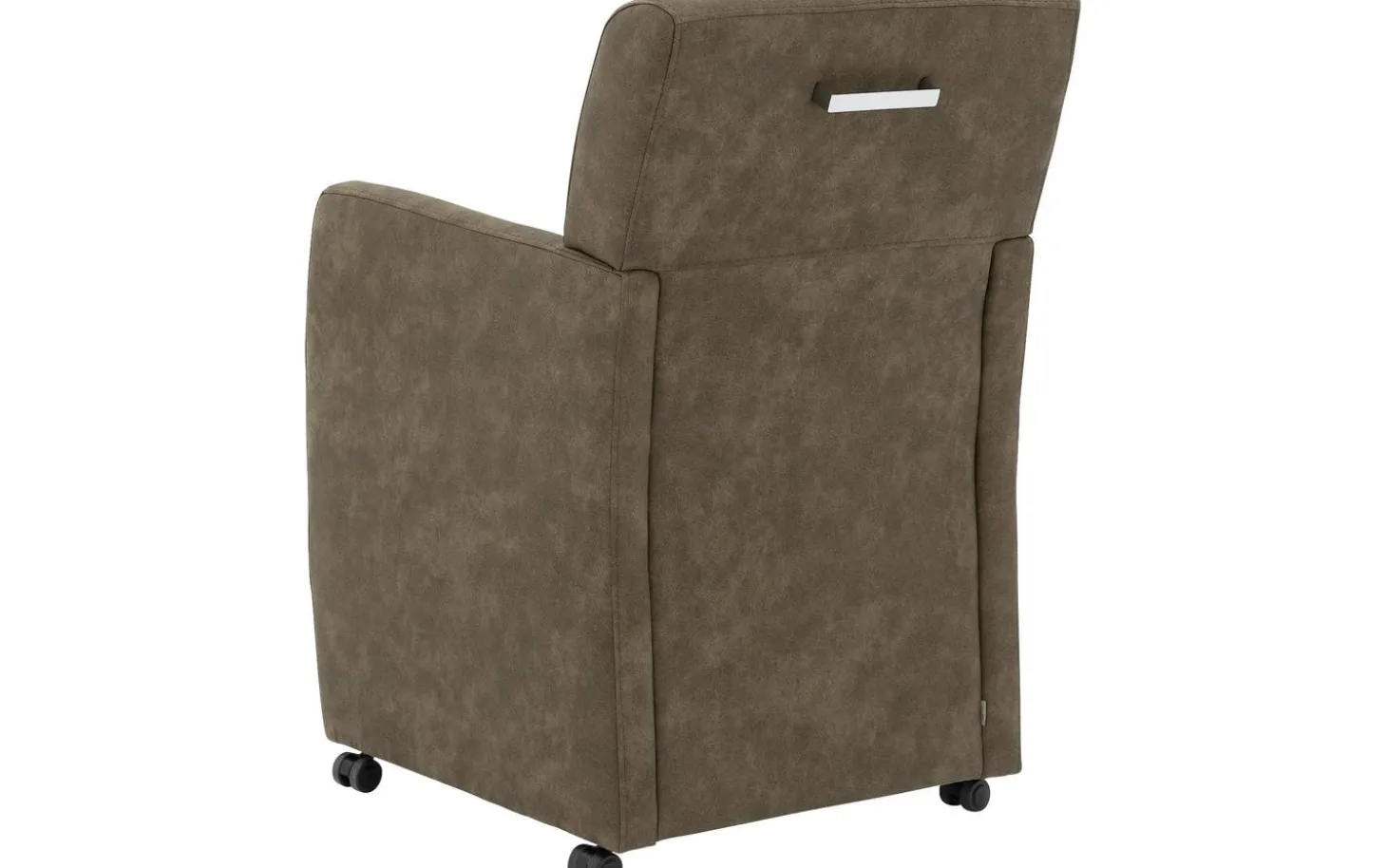 Der grüne Esszimmerstuhl Alex mit Armlehne vereint Komfort und Stil in Ihrem Essbereich. Dieser Esszimmerstuhl aus Mikrofaser hat ein zeitloses Design, wodurch er mühelos zu verschiedenen Wohnstilen passt. Die luxuriöse Mikrofaser-Polsterung in einem warmen Olivgrün verleiht Ihrem Interieur sofort eine edle Ausstrahlung. Mit praktischen schwarzen Rollen rücken Sie leicht an den Tisch und mit dem praktischen silbernen Griff können Sie den Stuhl mühelos verschieben.