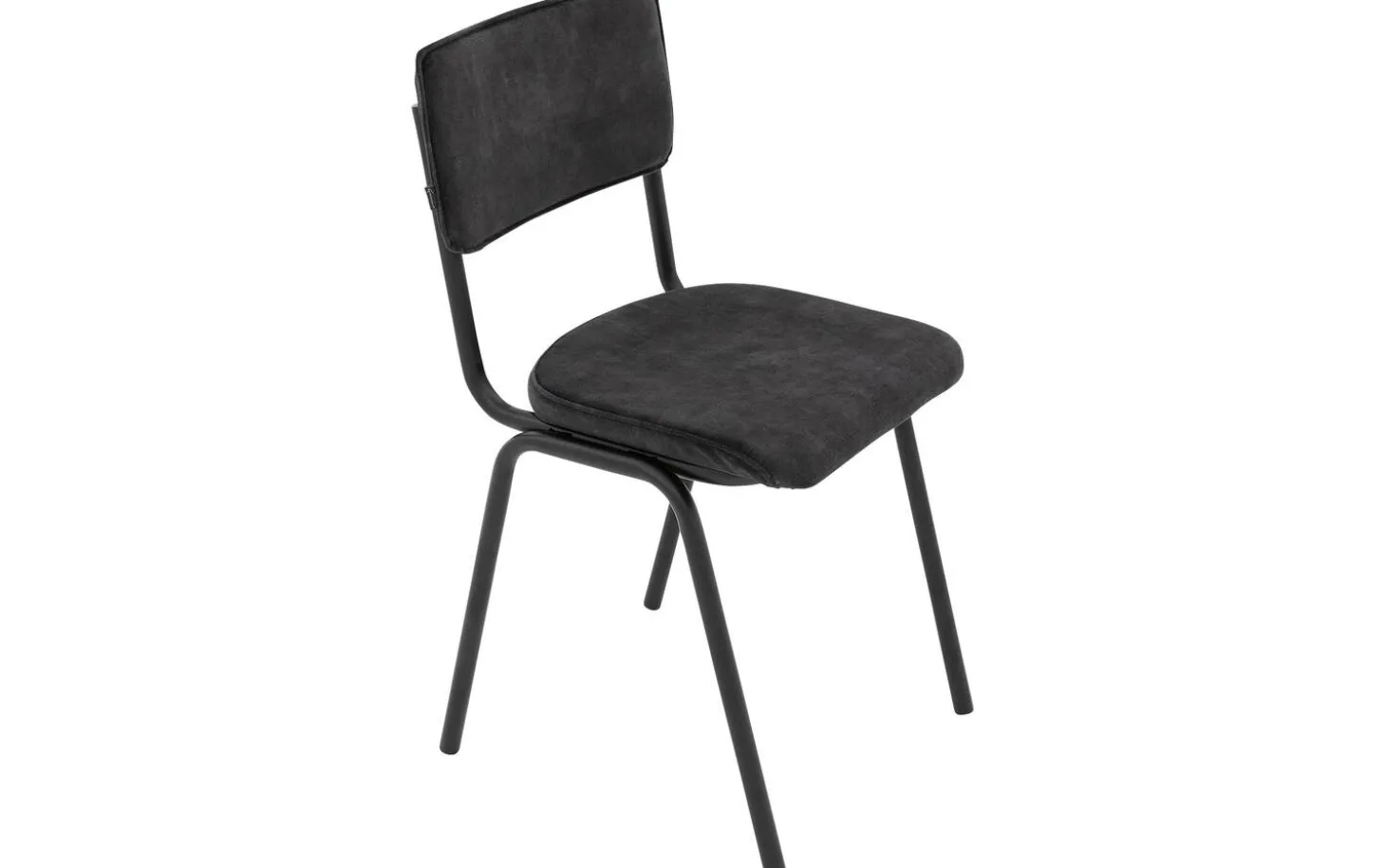 Grauer Esszimmerstuhl Chaplin ohne Armlehne vereint Retro-Design und Bescheidenheit in einem modernen Gewand. Dieser Stuhl aus Stoff erinnert an den vertrauten Schulstuhl, ein Stück Jugenderinnerung für Ihren Essbereich! Der schöne Velourbezug in Anthrazit verleiht Ihrem Interieur eine warme Ausstrahlung, während das klare Design perfekt zu einem urbanen oder industriellen Einrichtungsstil passt. Nehmen Sie Platz und genießen Sie gemütliche Essen mit Freunden und Familie.