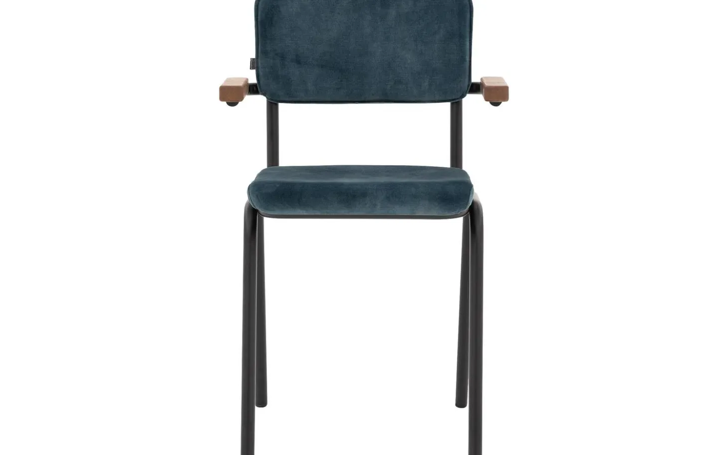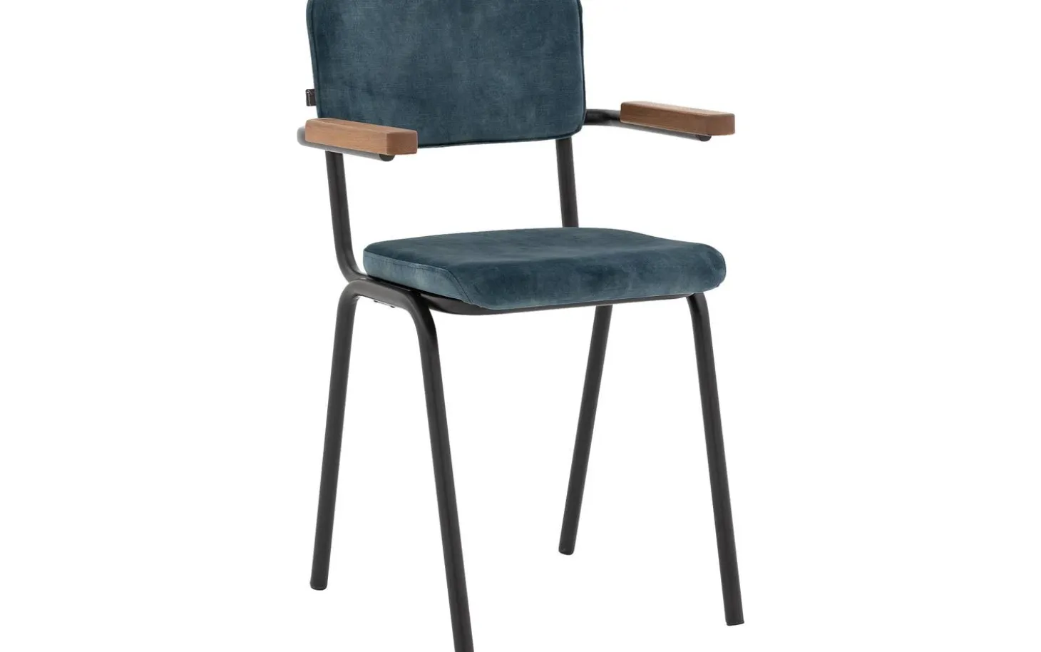 Betrachten Sie den Esszimmerstuhl Chaplin! Dieser blaue Esszimmerstuhl mit Armlehne bringt einen Hauch von Retro in Ihr Interieur. Das Design erinnert an einen klassischen Schulstuhl, jedoch in einem modernen Gewand. Der wunderschöne Velvet-Stoff in Petrol verleiht Ihrem Essbereich sofort eine stilvolle Ausstrahlung. Dank der stabilen Konstruktion und der hochwertigen Schaumstoffpolsterung können Sie endlose Abendessen und angenehme Unterhaltungen am Esstisch genießen.