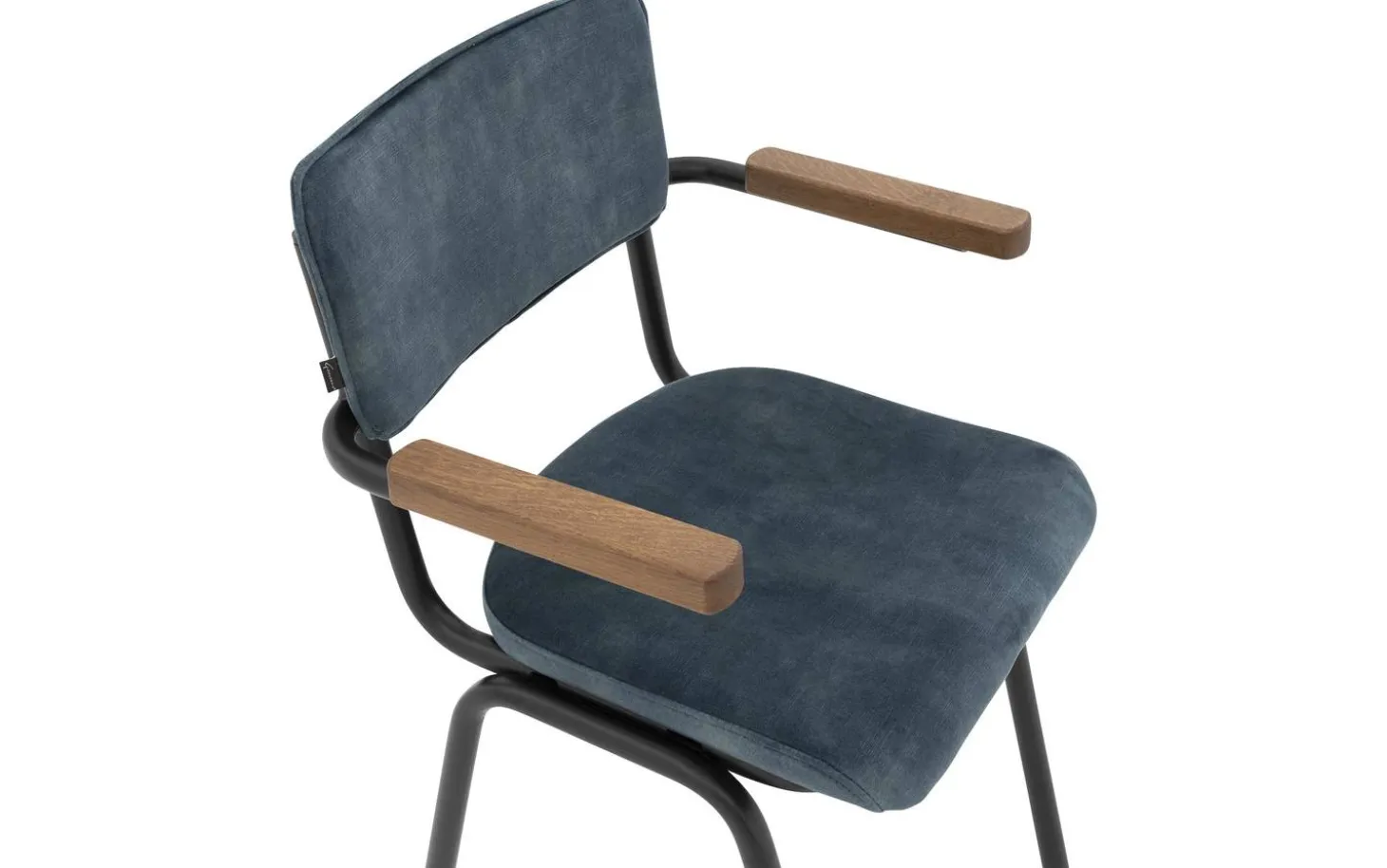 Stilvolle Details dieses blauen Esszimmerstuhls mit Armlehne