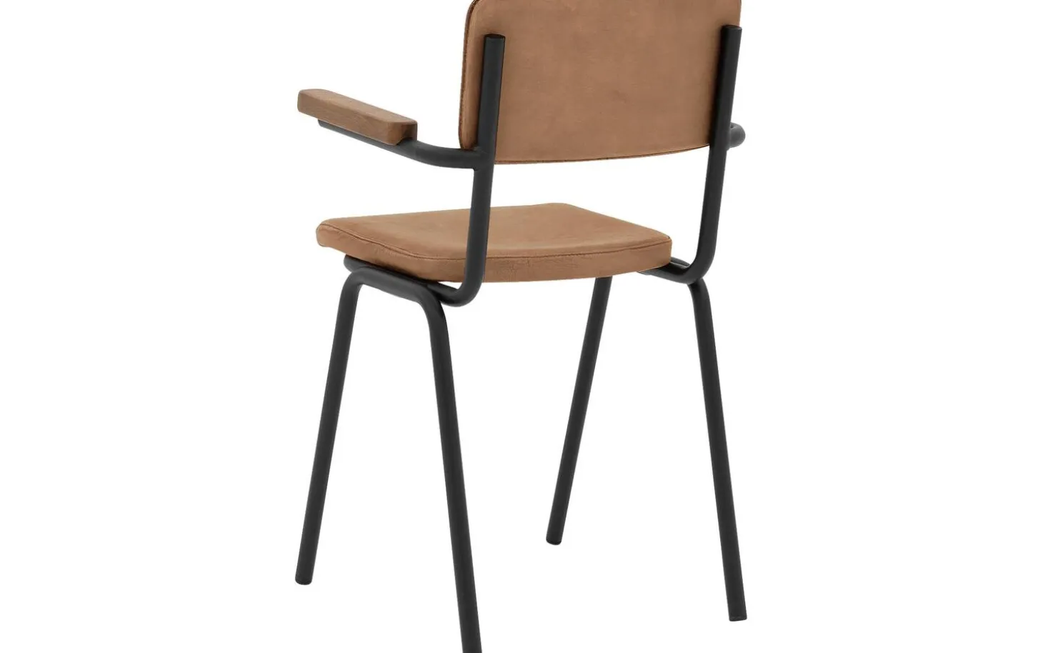 Die schwarz-matten Beine bilden einen stilvollen Kontrast zur braunen Lederbespannung. Mit einer Sitzbreite und -tiefe von 40 cm ist dieser Esszimmerstuhl kompakt, aber sehr funktional. Die feste Polsterung sorgt für einen klaren, modernen Look, der jahrelang schön bleibt.