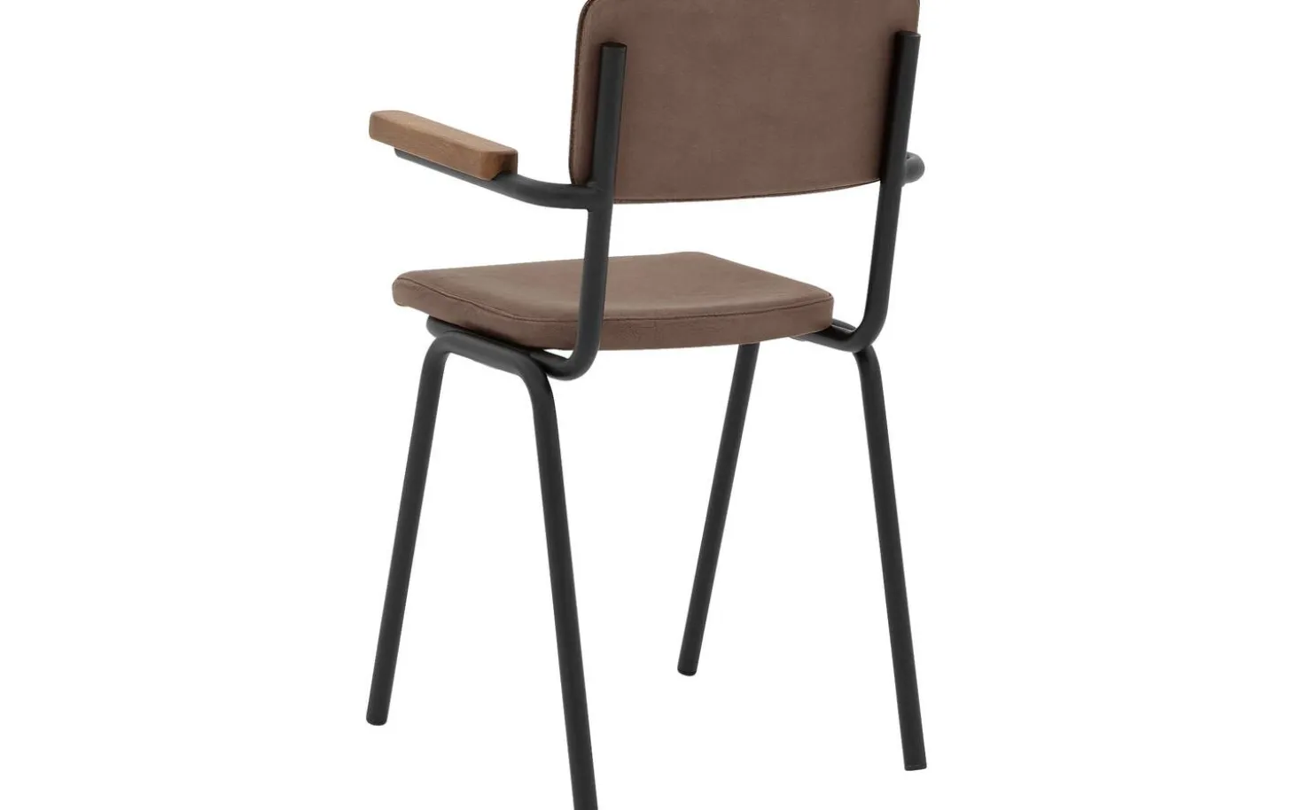 Der braune Esszimmerstuhl Chaplin aus Leder mit Armlehne kombiniert Retro-Design mit modernem Komfort. Dieser Stuhl erinnert an einen klassischen Schulstuhl, jedoch in einem stilvollen neuen Gewand. Mit einer festen Sitzfläche und hochwertiger Schaumstoffpolsterung sitzt man aktiv und bequem am Tisch. Das Outdoor-Leder verleiht dem Stuhl eine wunderschöne Vintage-Optik, die mit den Jahren nur noch schöner wird.