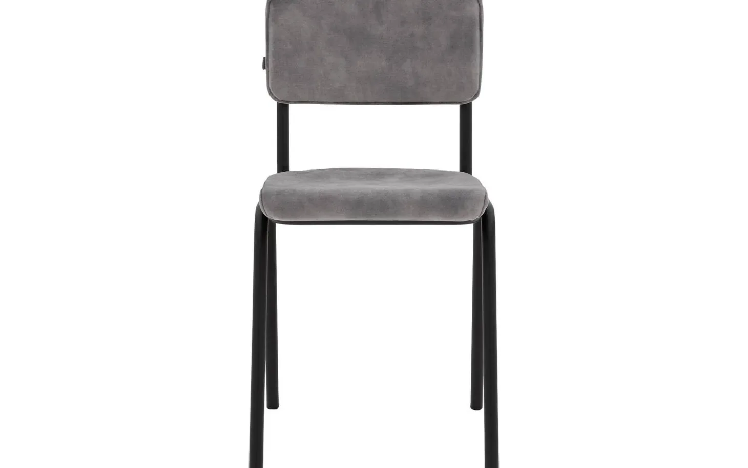 Grauer Esszimmerstuhl Chaplin ohne Armlehne bringt einen Hauch von Jugenderinnerungen in Ihren Essbereich. Das Retro-Design erinnert an den vertrauten Schulstuhl, jedoch in einer neuen und stilvollen Ausführung. Chaplin kombiniert nostalgisches Design mit modernem Komfort dank des weichen Velours-Bezugs in einem schicken grauen Farbton. Die schwarz-matten Metallbeine sorgen für ein stabiles Fundament und passen perfekt zu verschiedenen Einrichtungsstilen, von Urban bis Industriell.