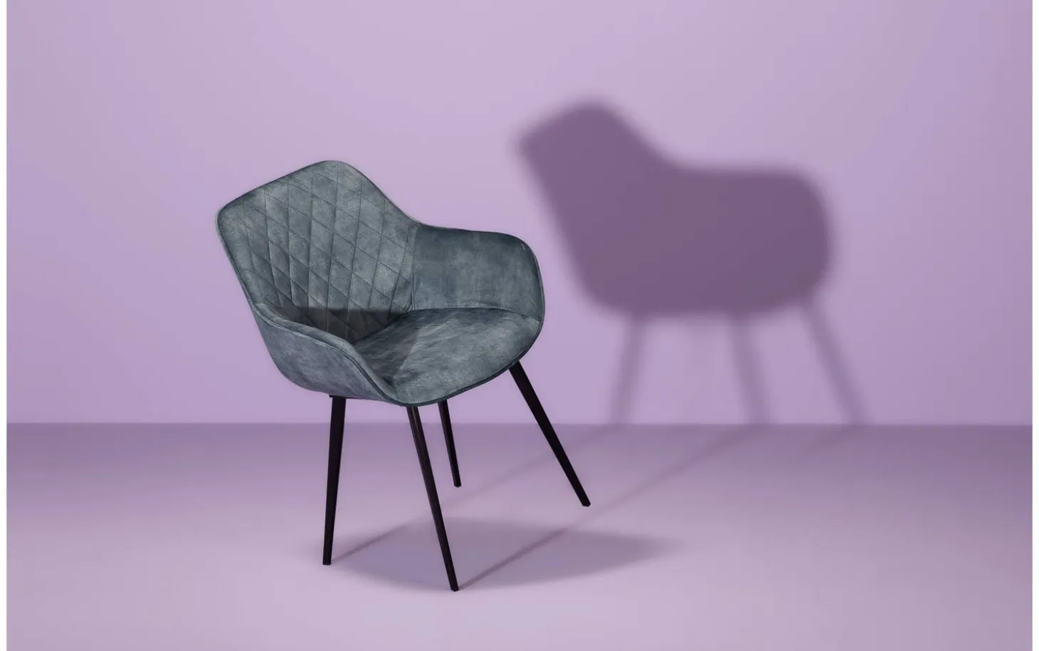 Das schwarze Gestell mit Pulverbeschichtung harmoniert wunderbar mit dem blauen Velours-Bezug und sorgt für ein harmonisches Gesamtbild. Die feste Polsterung sorgt für einen klaren, modernen Look, der über Jahre hinweg schön bleibt. Mit Ebi entscheiden Sie sich für einen Esszimmerstuhl, der auffällt, ohne zu übertreiben.
